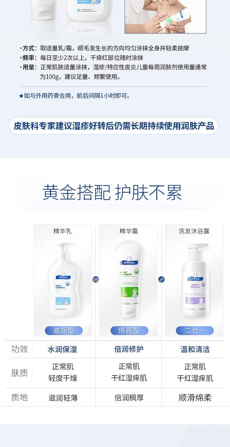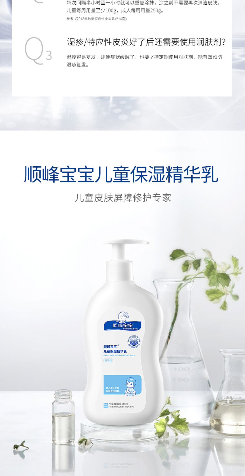 顺峰宝宝儿童保湿精华乳新生婴儿滋润春夏面霜身体乳245g 舒缓干燥 缓解瘙痒