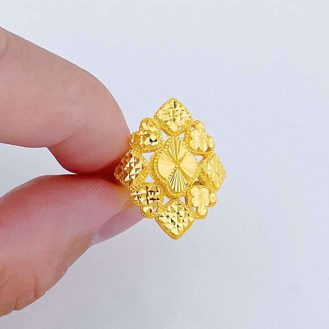 【限时克减150元】足金999.9 活口超薄夸张戒车花菱形女戒(AF020JZ00061)(预售产品下单后不退款不退货不换货不补差价