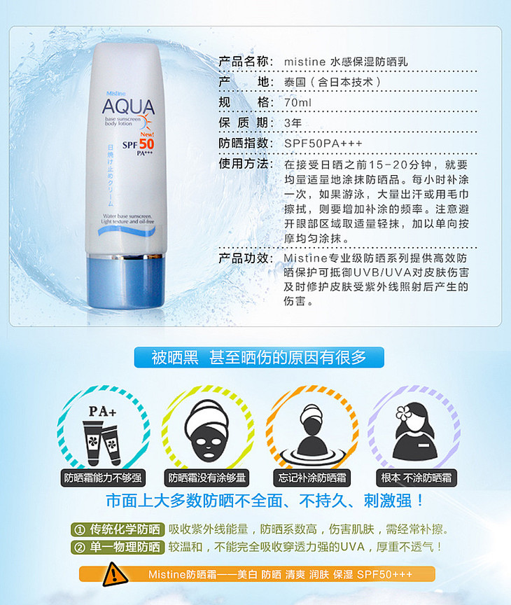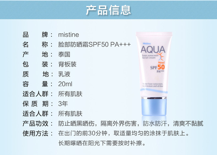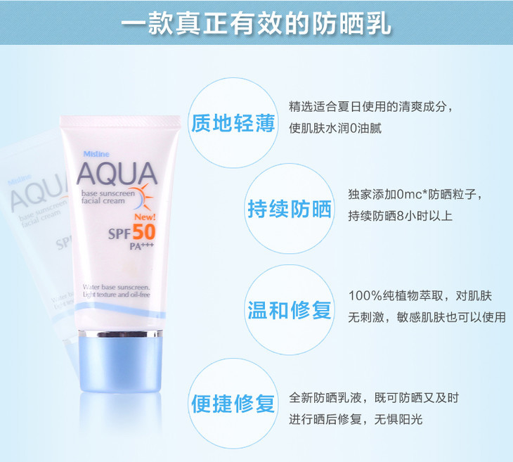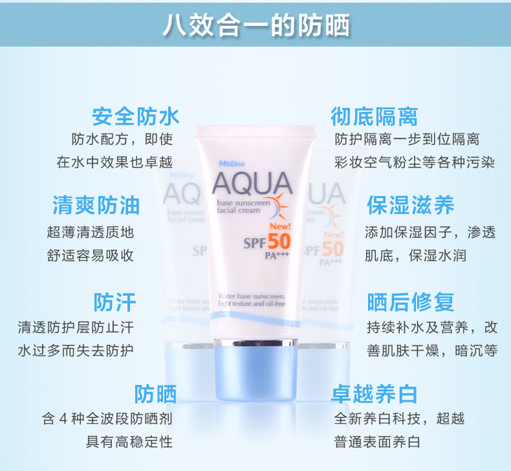 【现货】泰国Mistine AQUA 面部防晒霜 身体防晒霜 防水防油防汗保湿防晒修复隔离