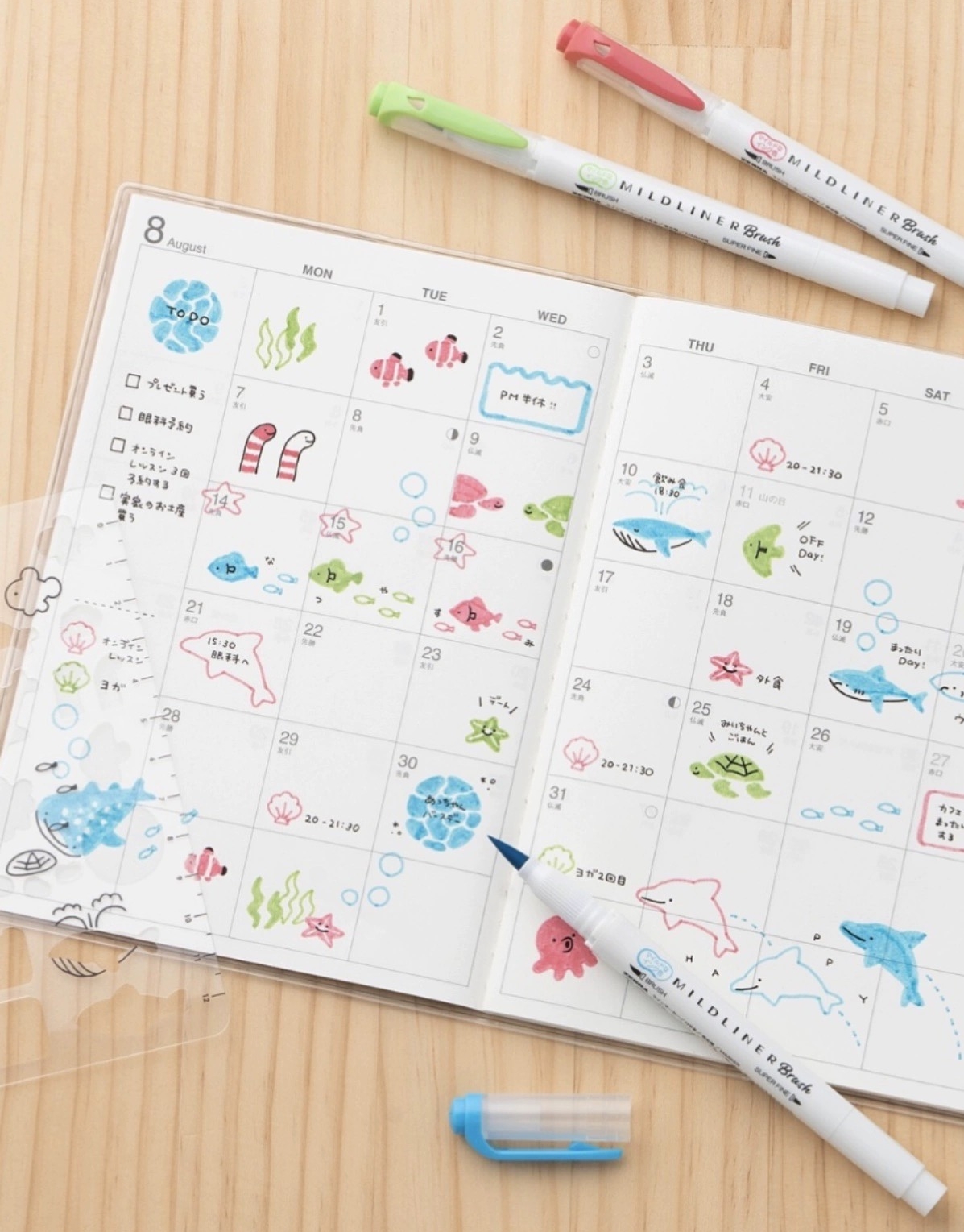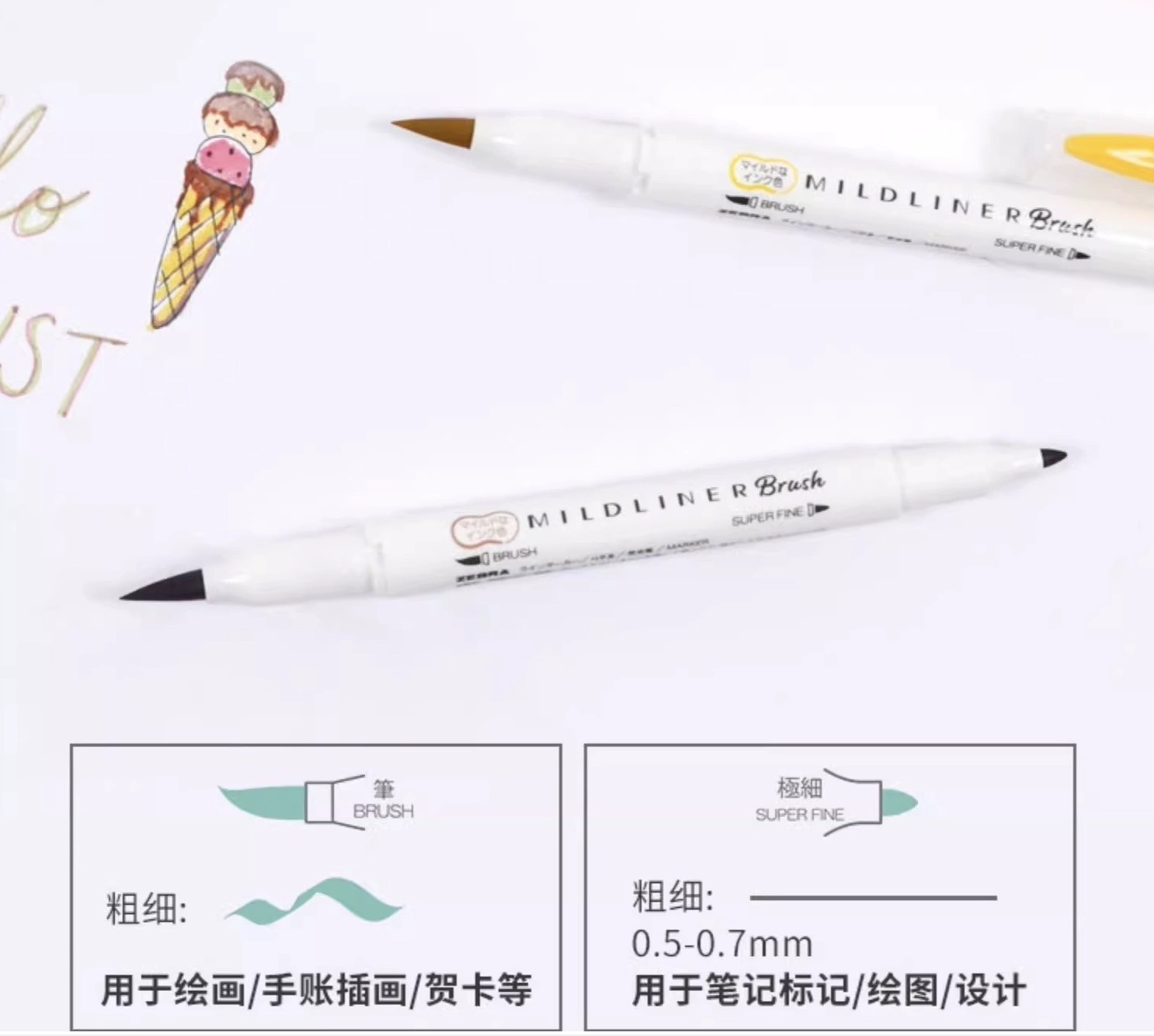 日本ZEBRA斑马MILDLINE Brush×ocha软头笔尖荧光笔套装