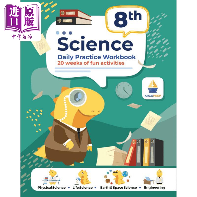 【中商原版】2024新版美国课标八年级科学每日练习册 20周趣味活动 8th Grade Science Daily Practice Workbook 含视频解析
