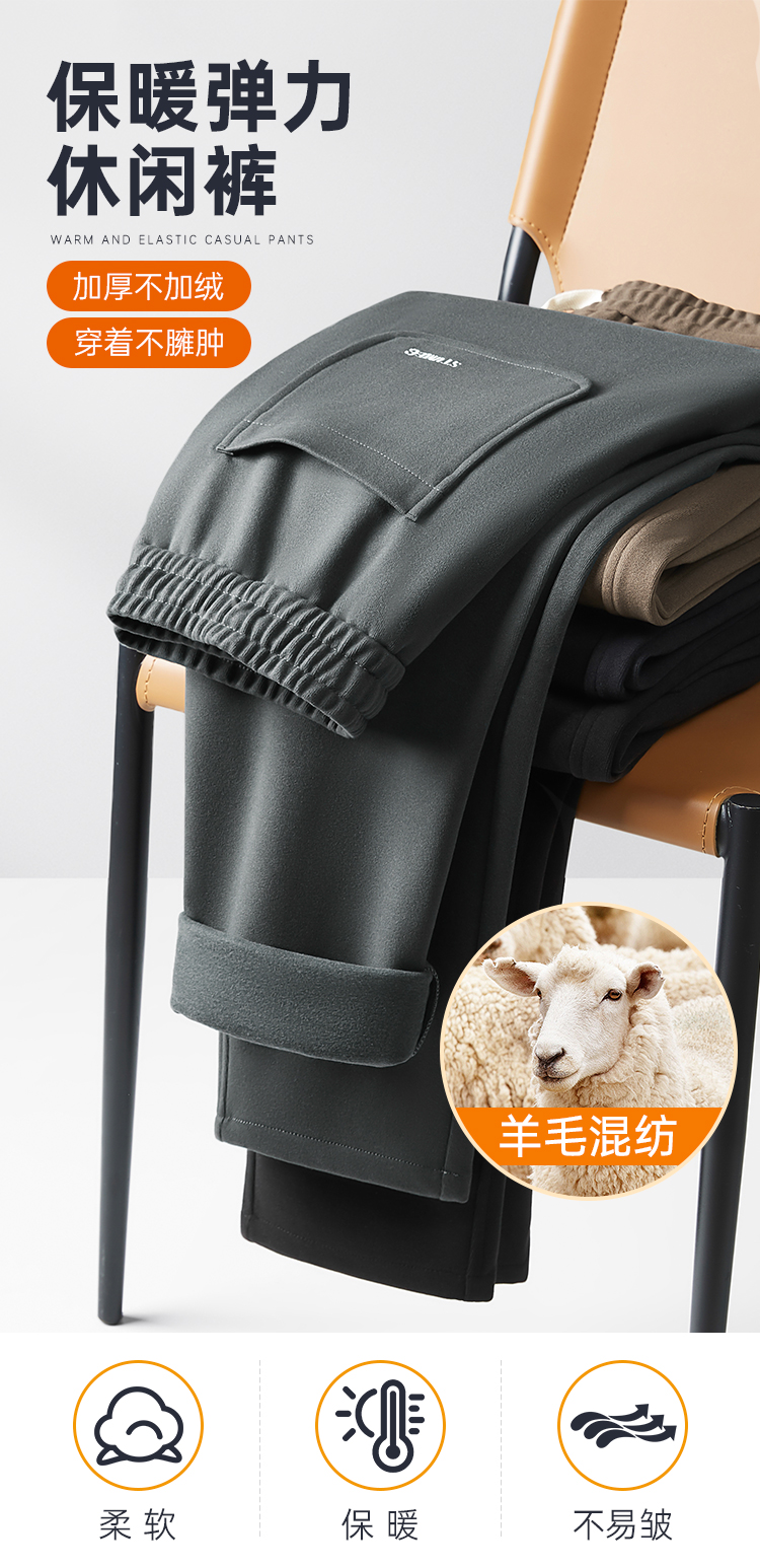 【实付满399送保温杯】【含羊毛保暖弹力直筒休闲裤】户外休闲直筒长裤加厚百搭运动裤子KT529