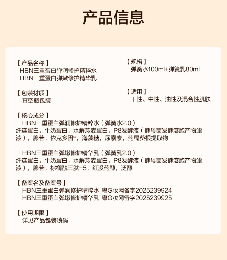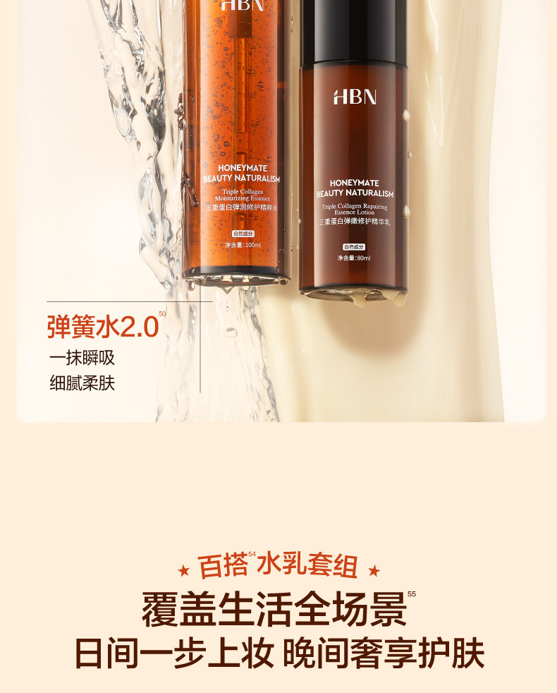 HBN弹簧水乳套装 舒缓修护保湿滋润补水紧致敏感肌护肤品化妆品