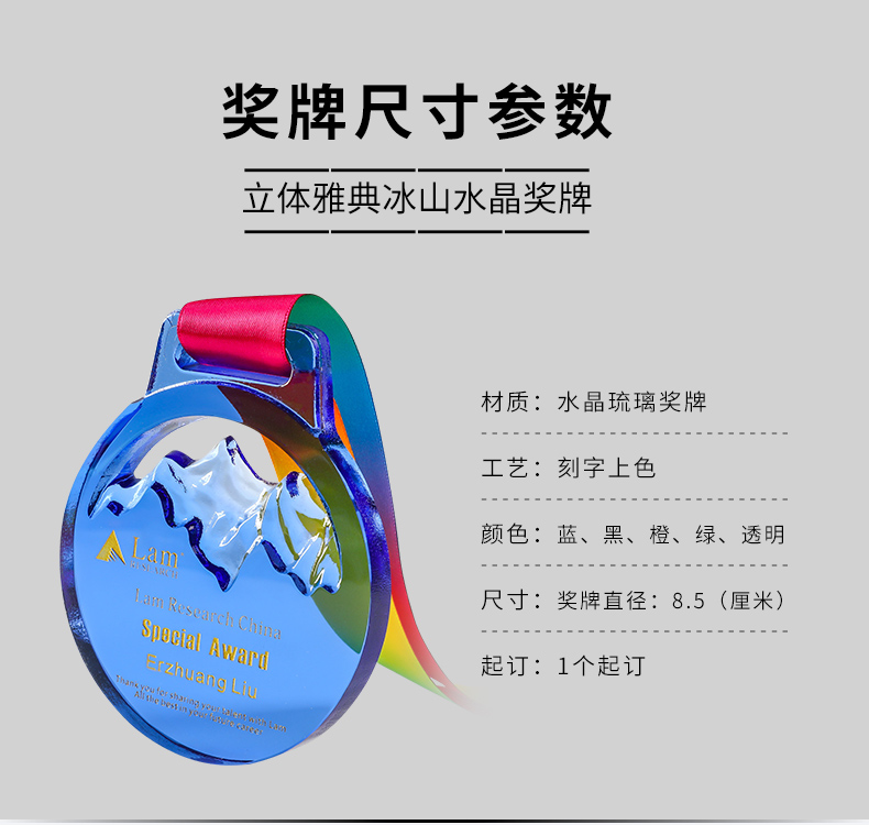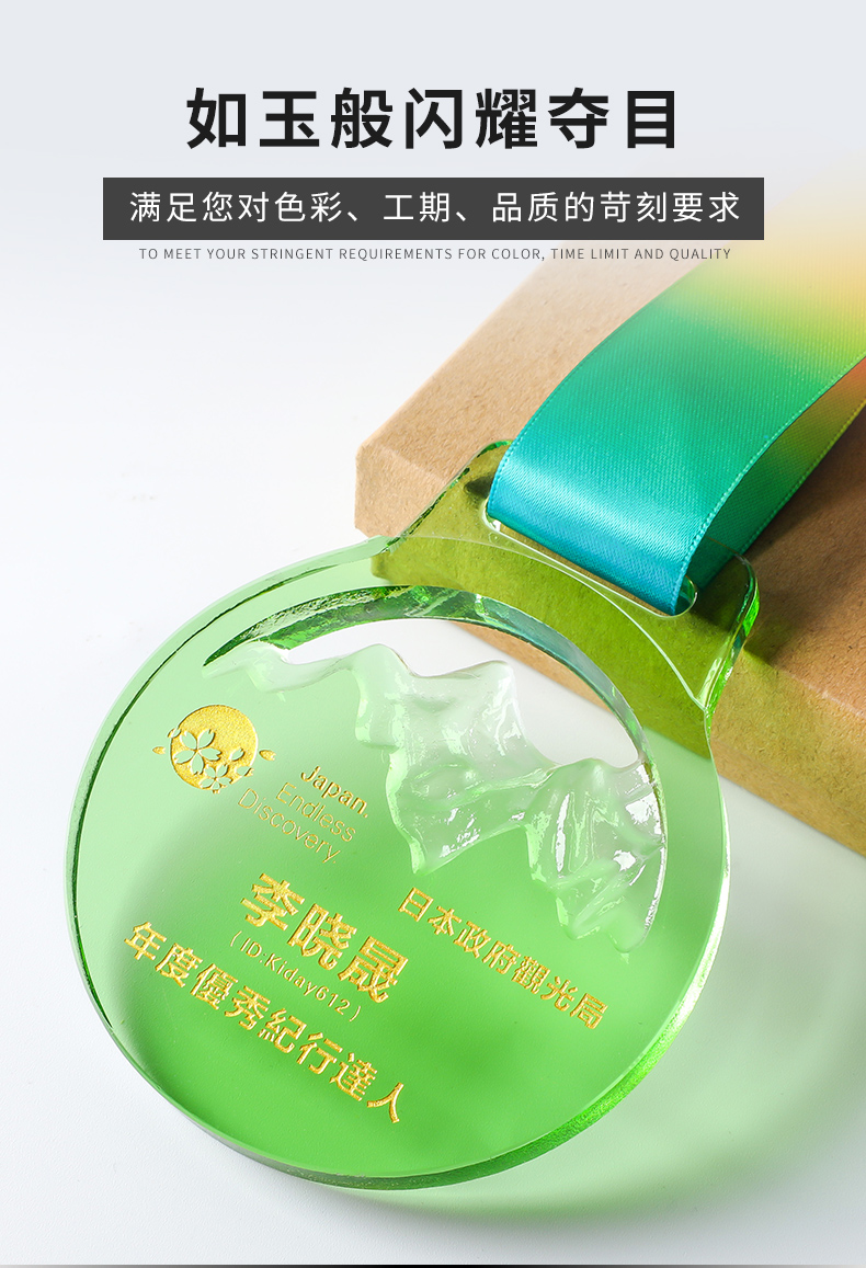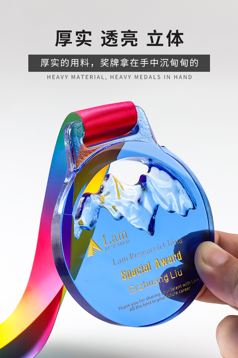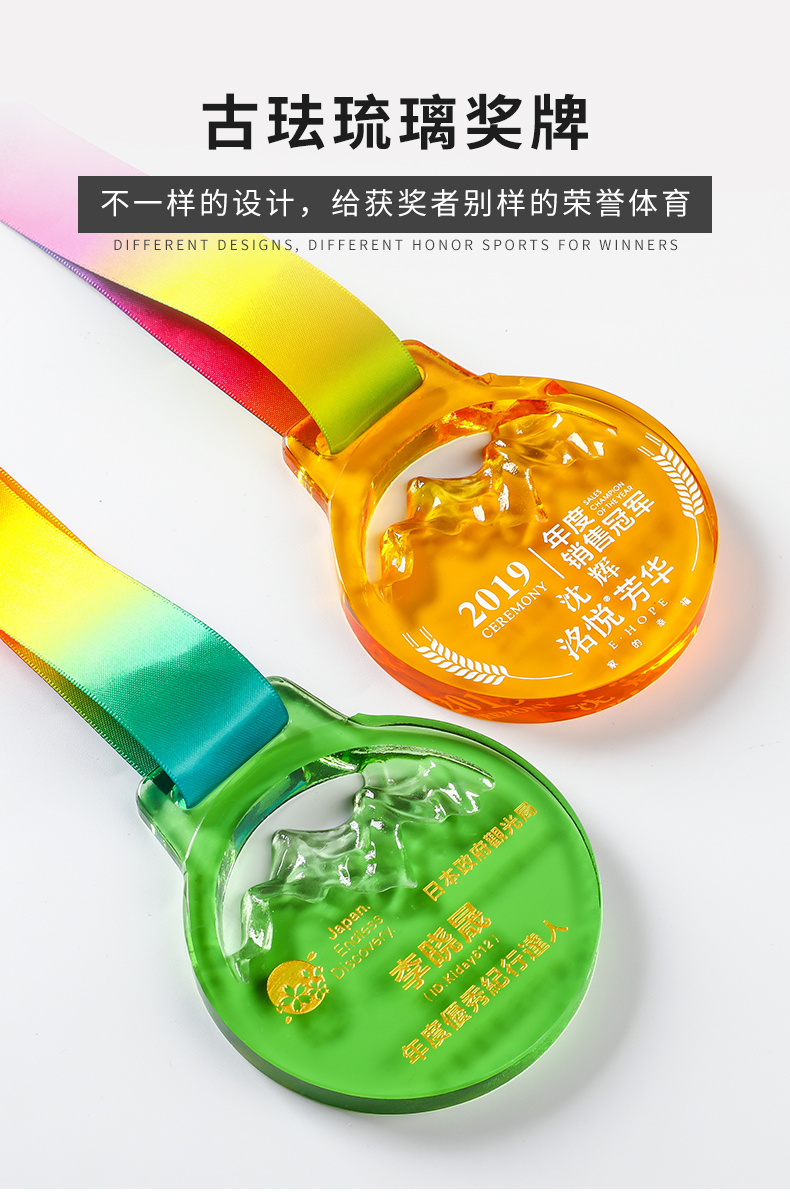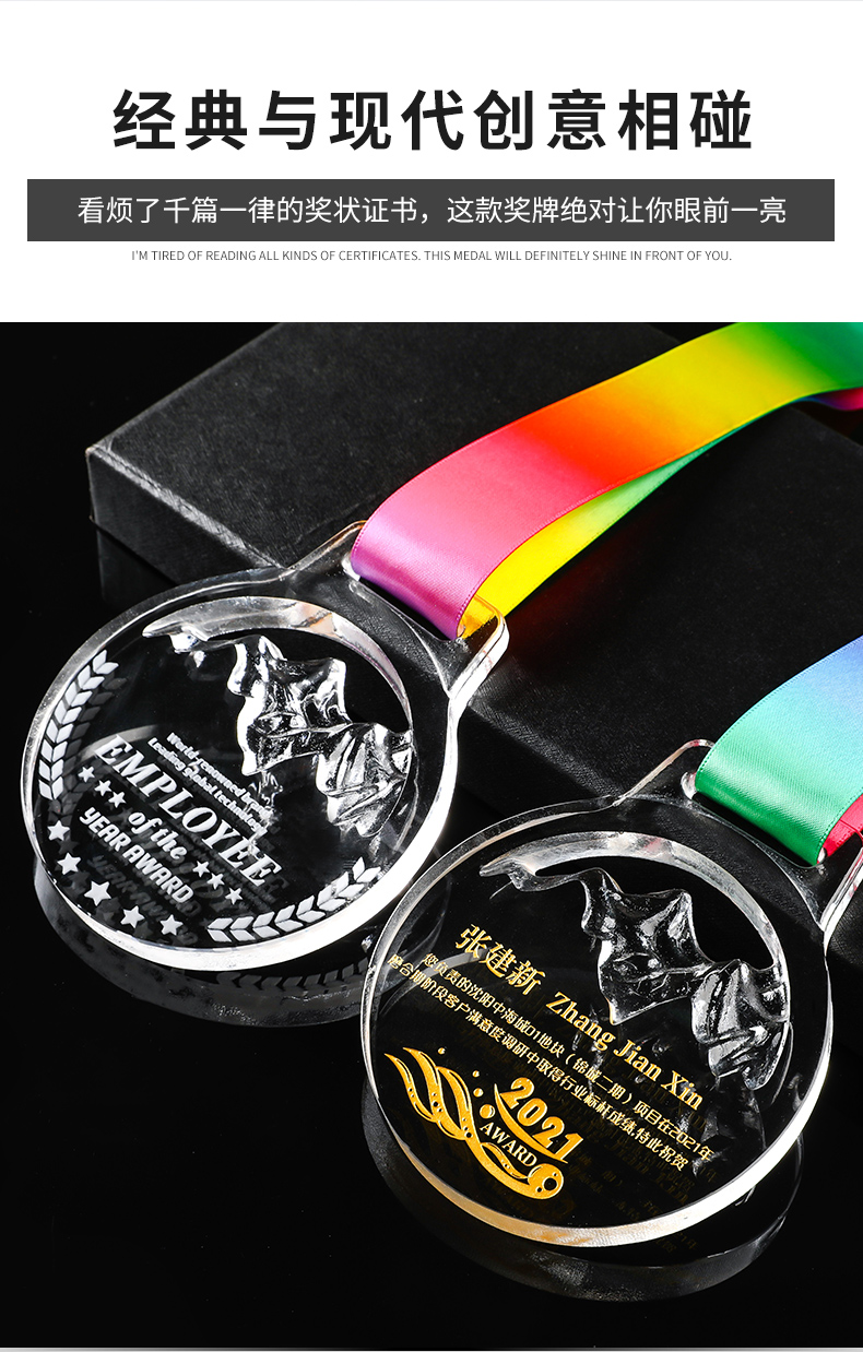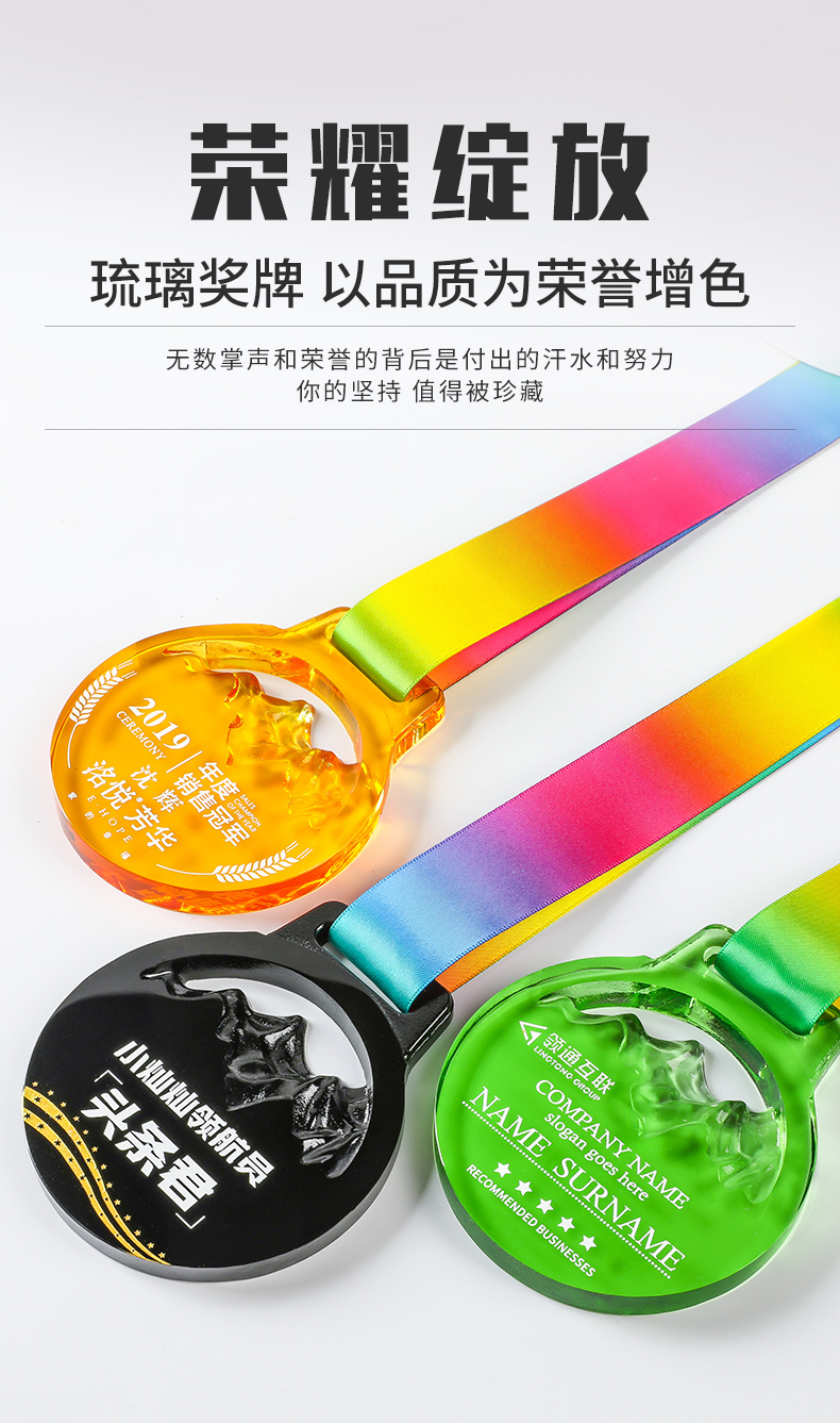 奖牌挂牌定制定做水晶内雕彩印荣誉表彰运动会纪念马拉松比赛奖品