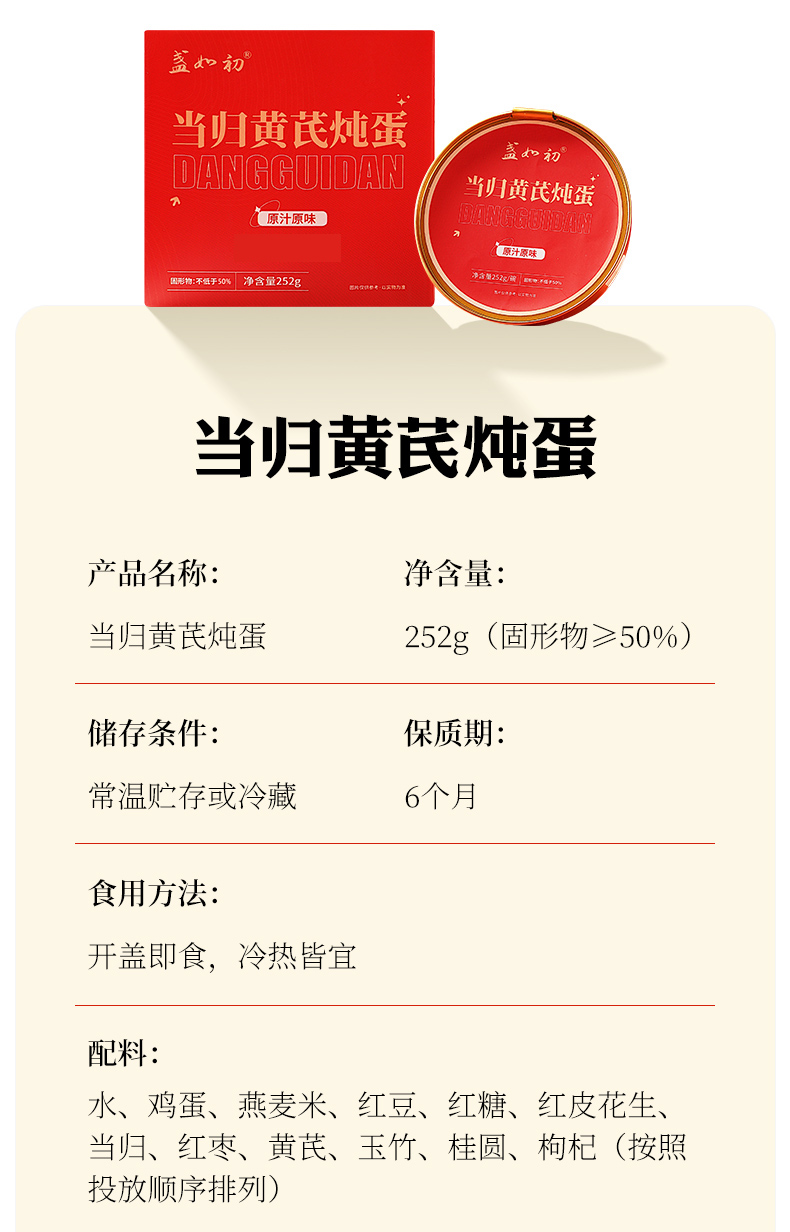 当归黄芪炖蛋 252克/碗*6碗【散装】