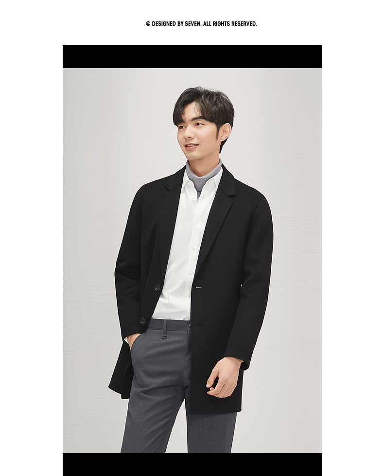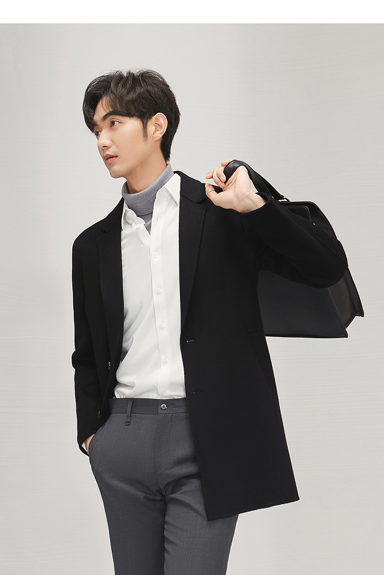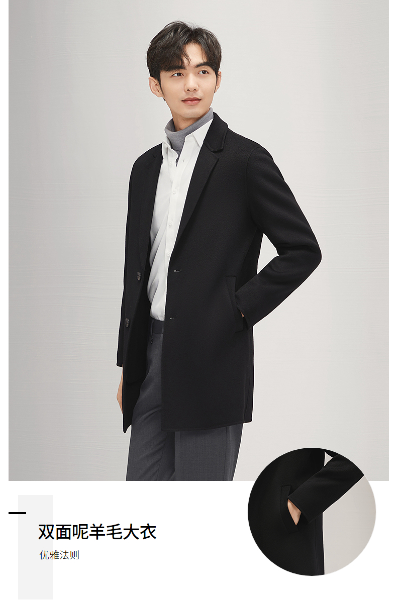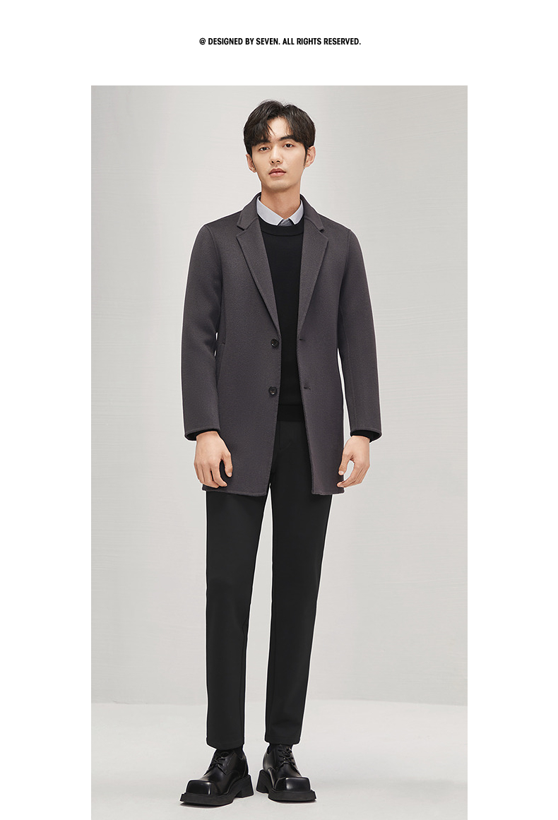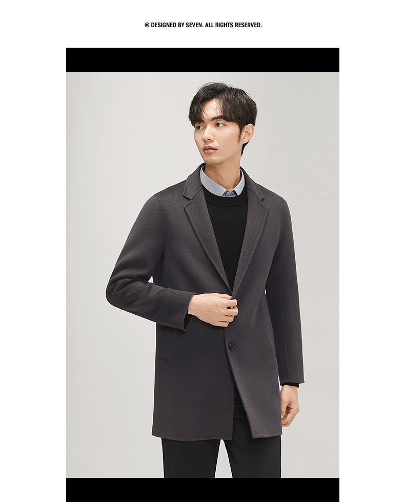 【100%羊毛】柒牌男士毛呢大衣秋冬新品商务休闲中长款双面呢外套 127D70200