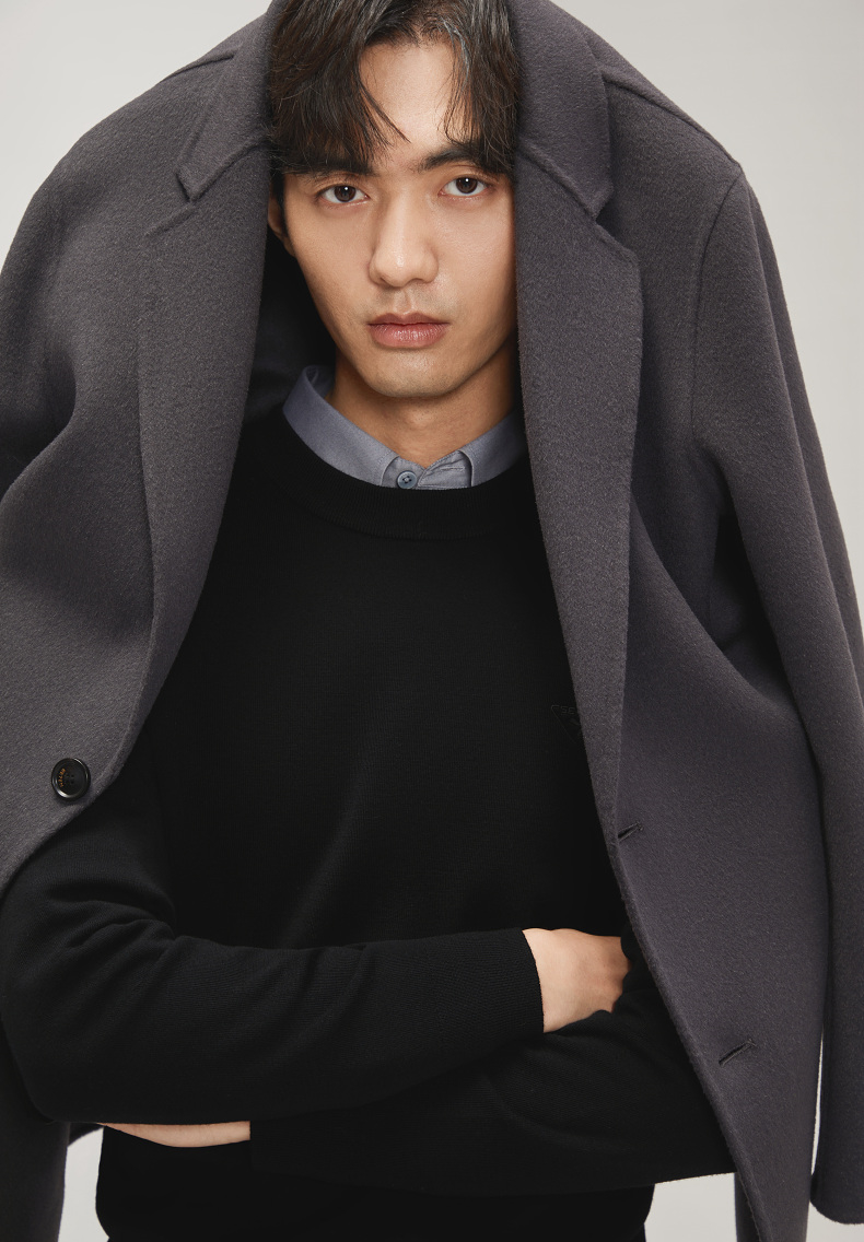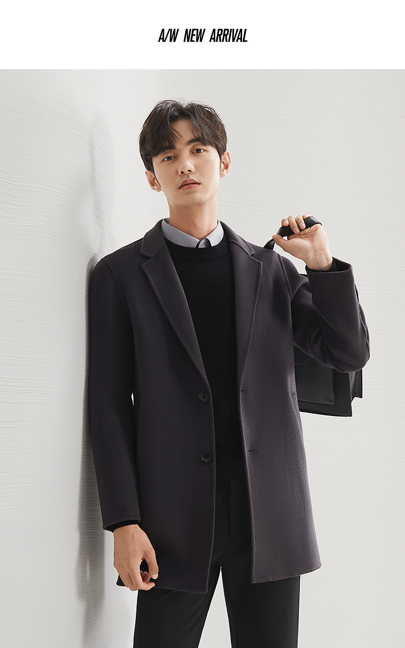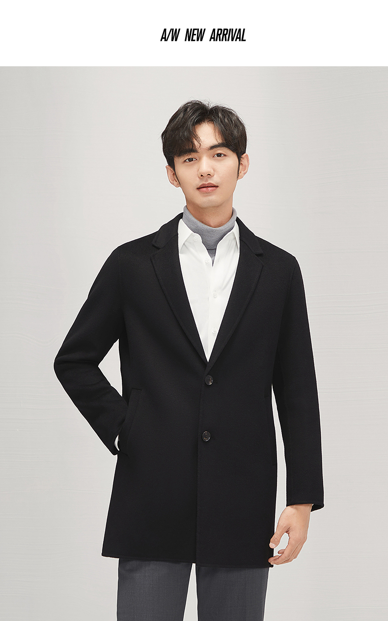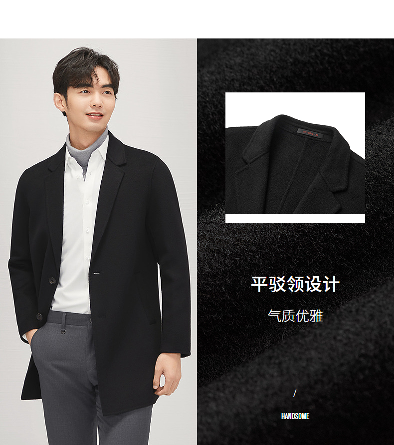 【100%羊毛】柒牌男士毛呢大衣秋冬新品商务休闲中长款双面呢外套 127D70200