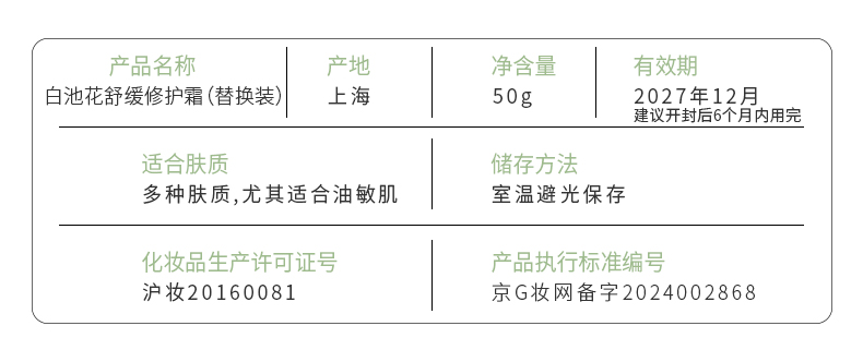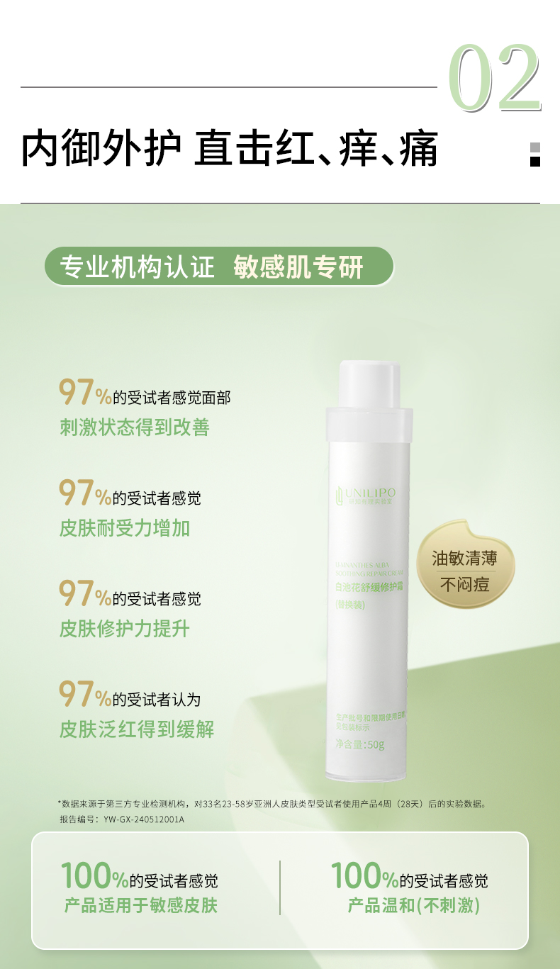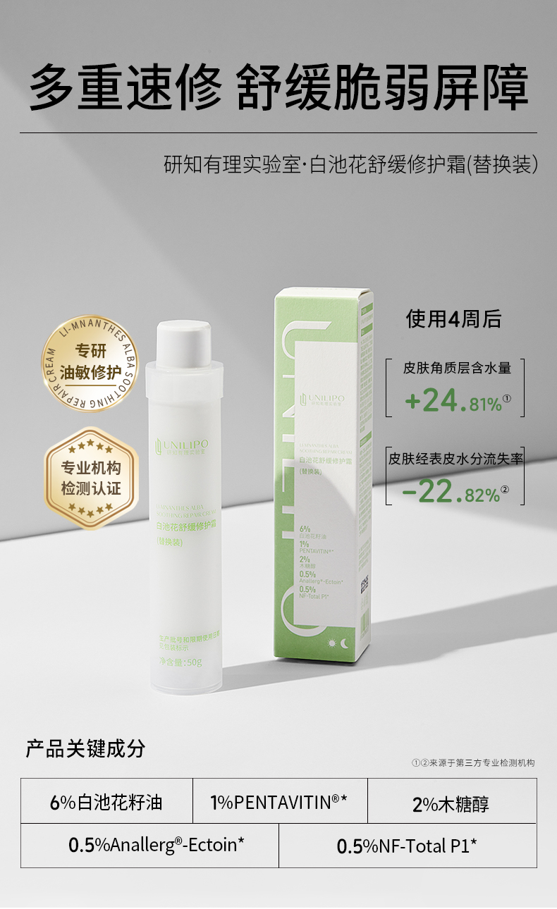 UNILIPO研知有理 白池花舒缓修护霜替换装 50g(没买过正装的请勿单独购买替换装,无法使用!)