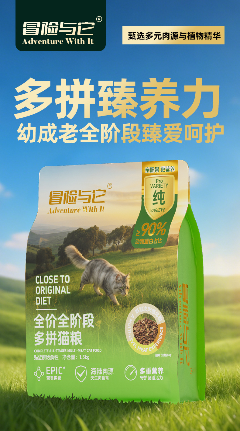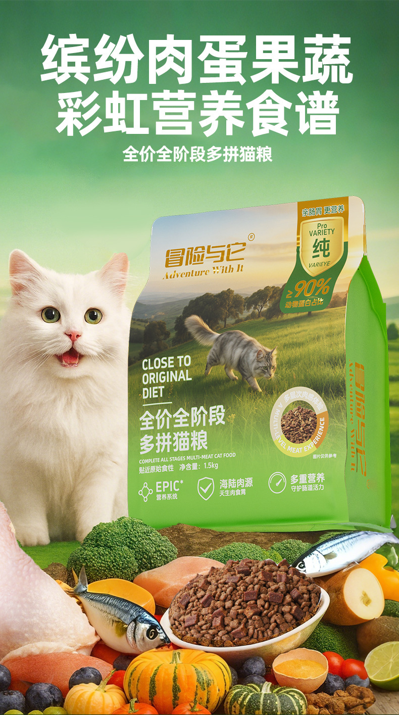 冒险与它全价全期多拼猫粮2.5kg 牛肉粒+鸡肉松 高适口性【包装更新】
