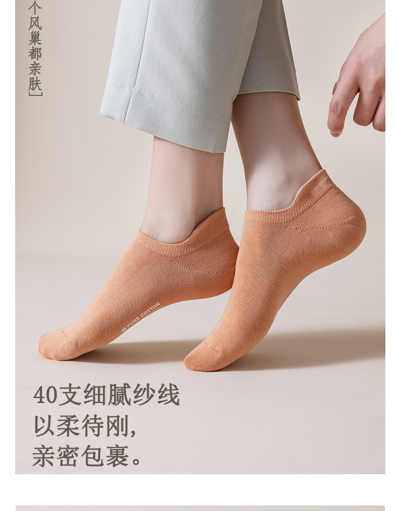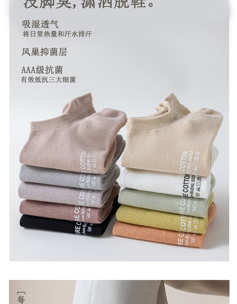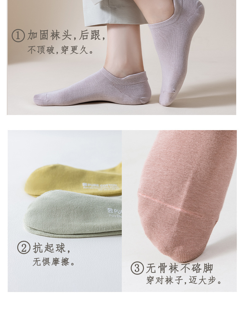 夏季薄款【5双装 不掉跟船袜女 全棉浅口】防臭纯棉百棉袜子女短袜