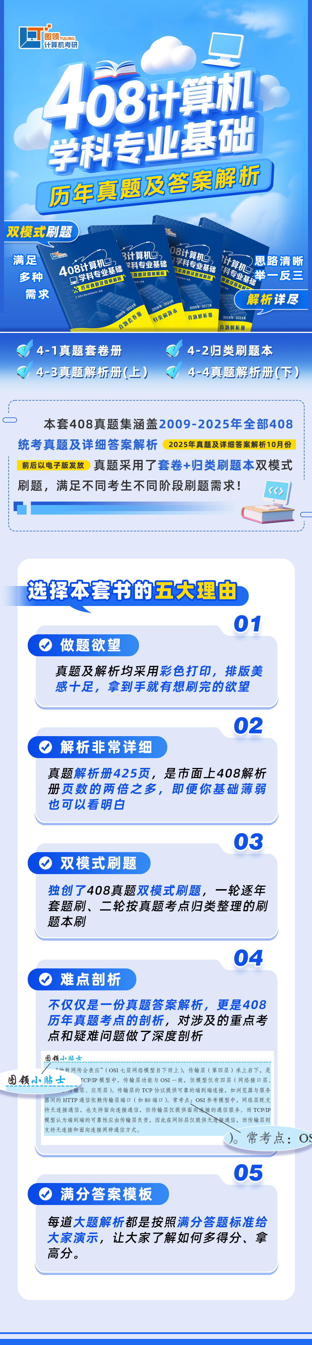 【图领计算机】2026年 408计算机学科专业基础历年真题及答案解析 专业课 真题带刷 复习辅导书