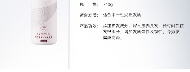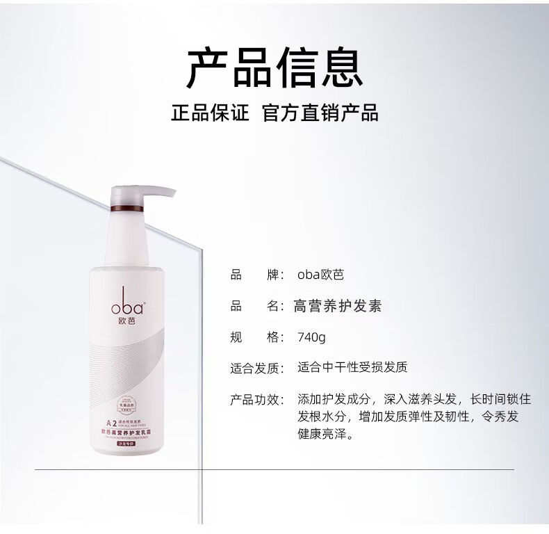 oba欧芭洗发水二代A2滋养柔顺干枯毛躁护发素补水护发乳740ml