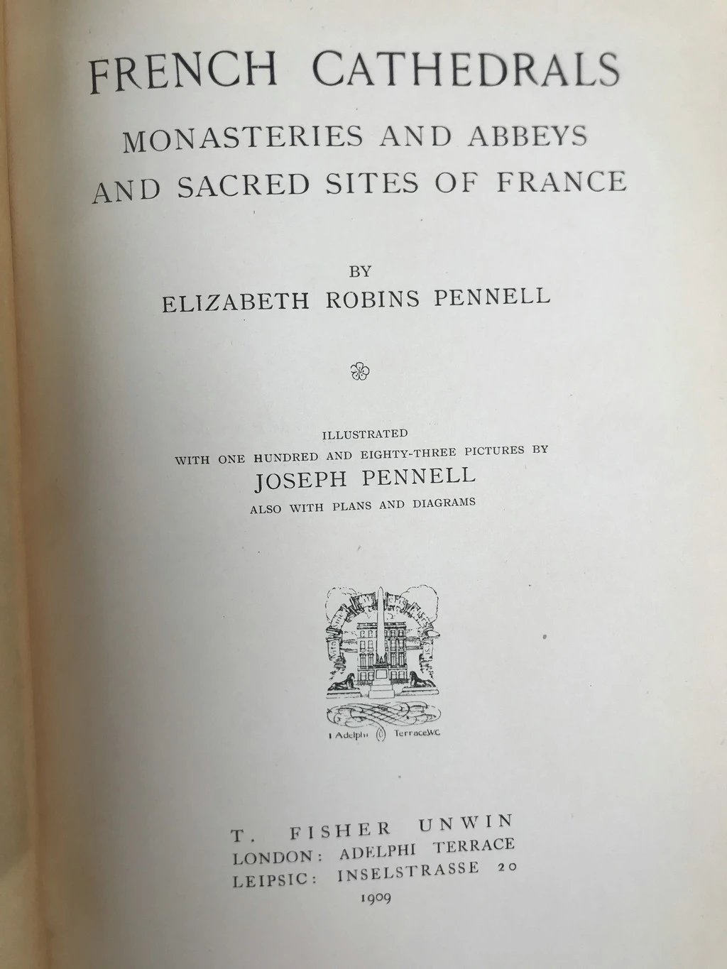 一本研究法国大教堂、修道院与圣地等宗教建筑的著作,作者伊丽莎白・罗宾斯・彭内尔是英国知名文化作家,其丈夫约瑟夫・彭内尔是著名插画家,夫妻二人合力完成了这部文字与图像的双重盛宴。书中既解析建筑风格与艺术细节,也梳理建筑的历史背景与宗教文化意义,既是当时的爱好的建筑旅行者指南,也推动了宗教建筑文化的学术普,是20世纪初 “文化旅行类建筑研究著作” 的典型。