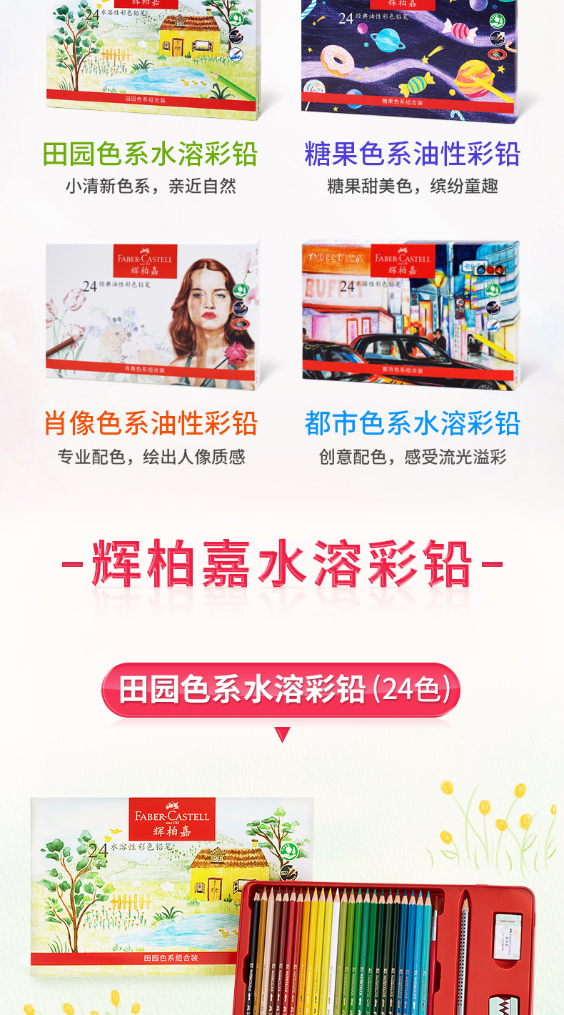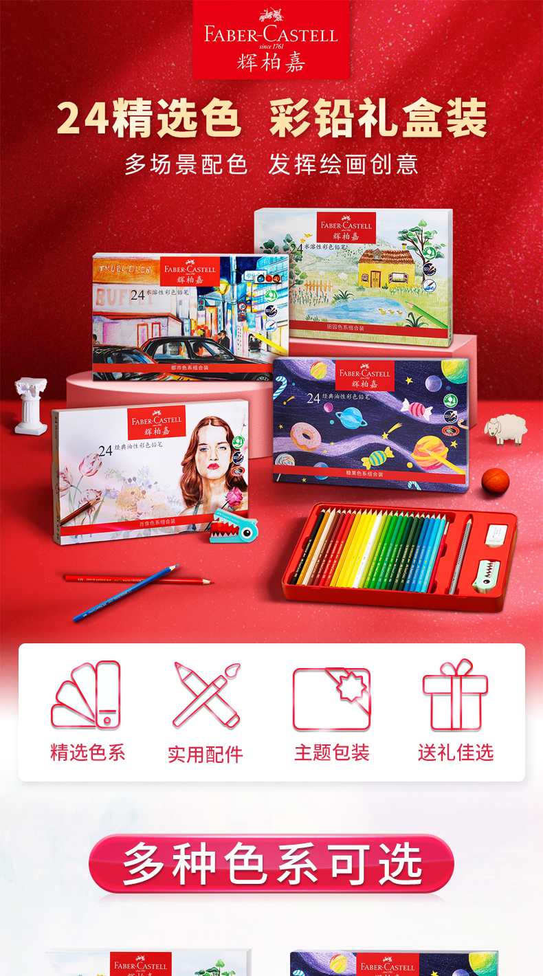 【福利购】德国辉柏嘉 红系列 24色精选彩色铅笔礼盒 都市色系