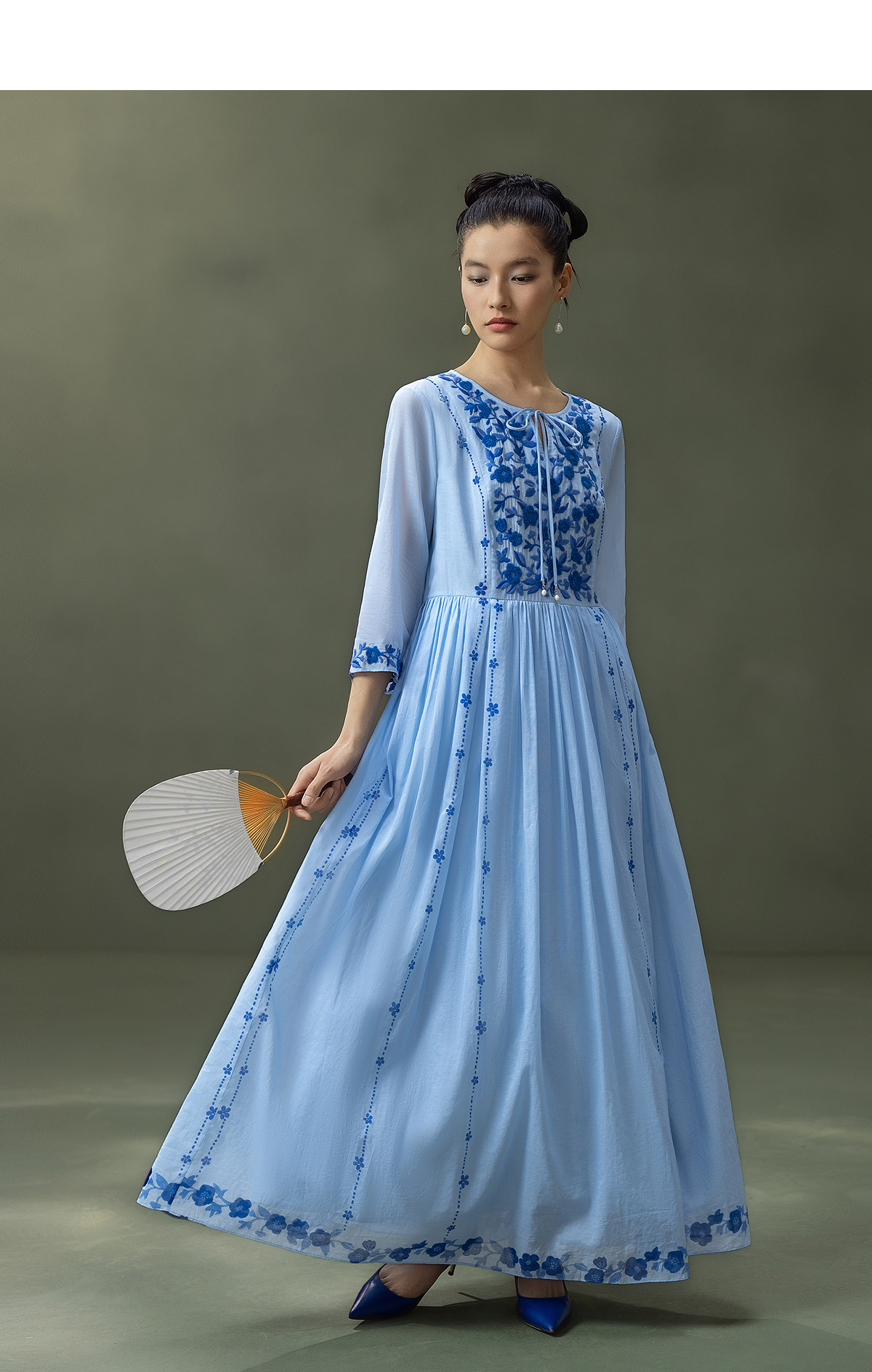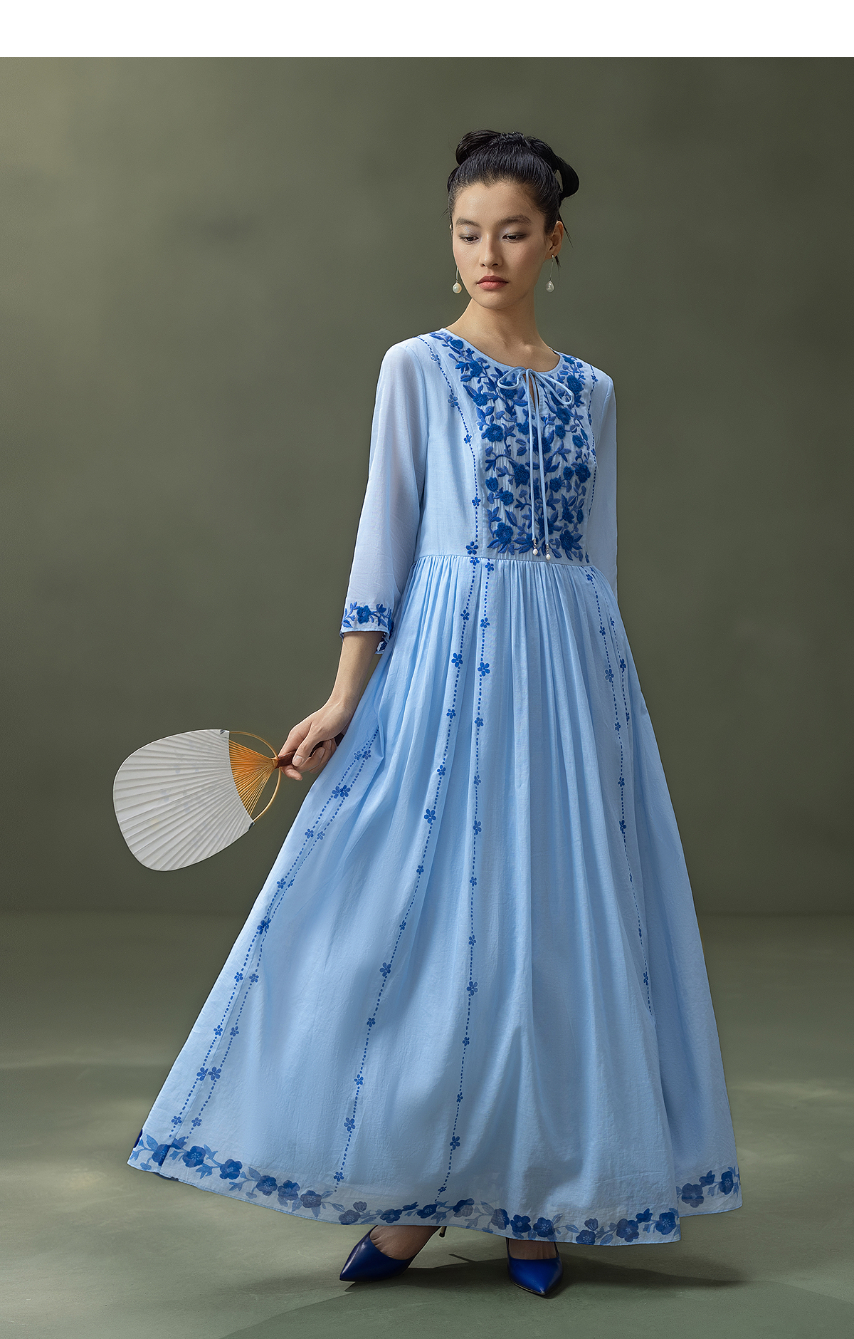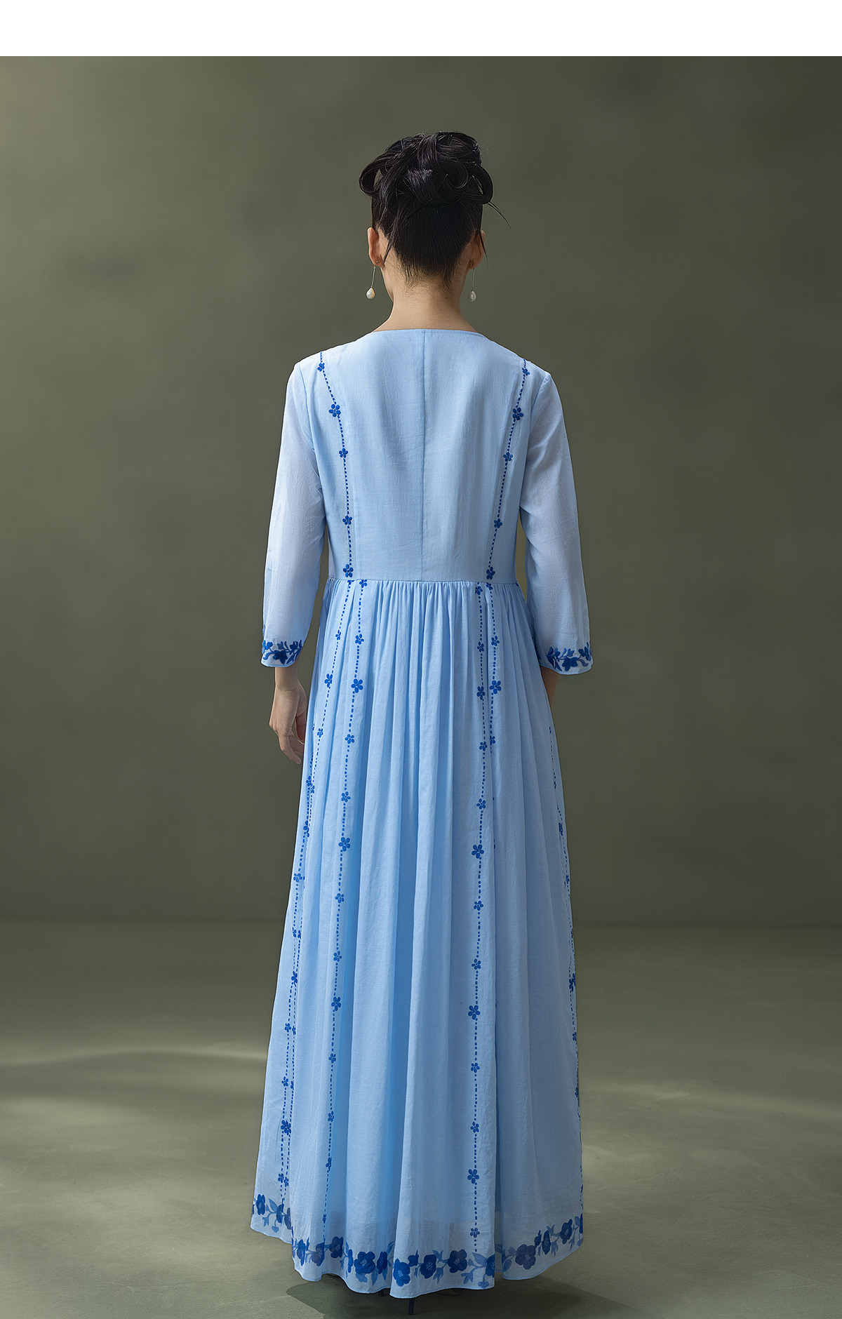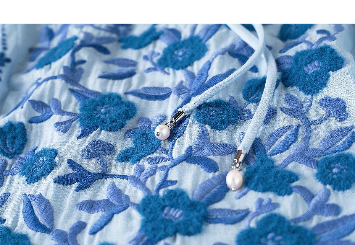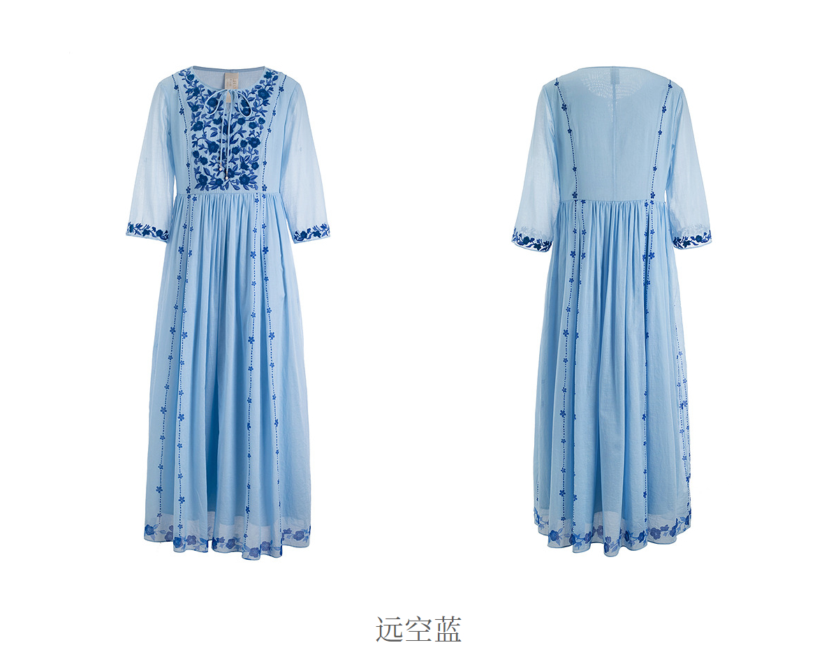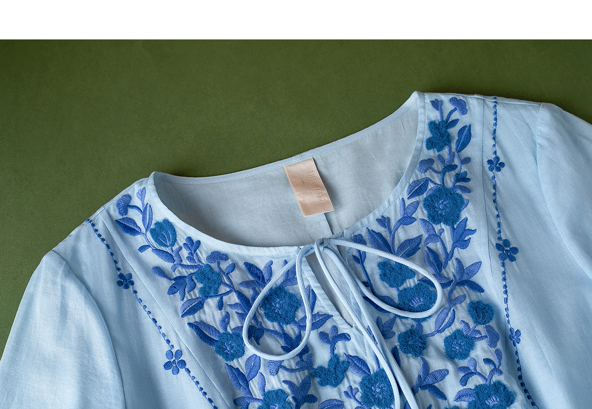 【林栖设计小店】明月花|远空蓝绒绣肌理复古2026夏新款婴儿棉连衣裙子