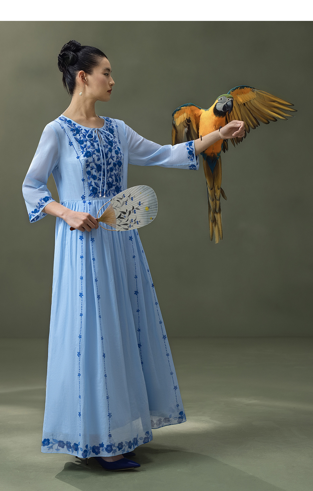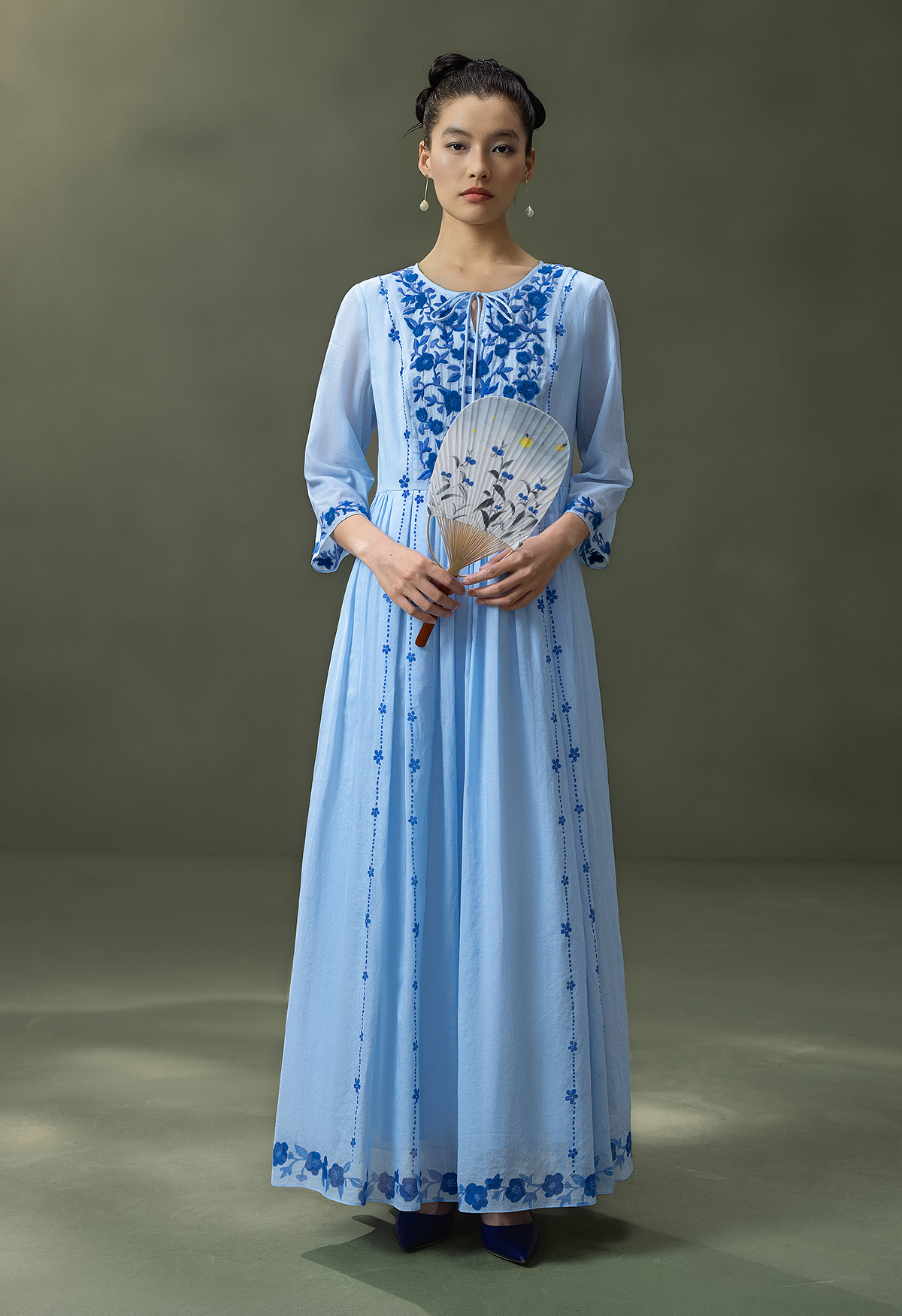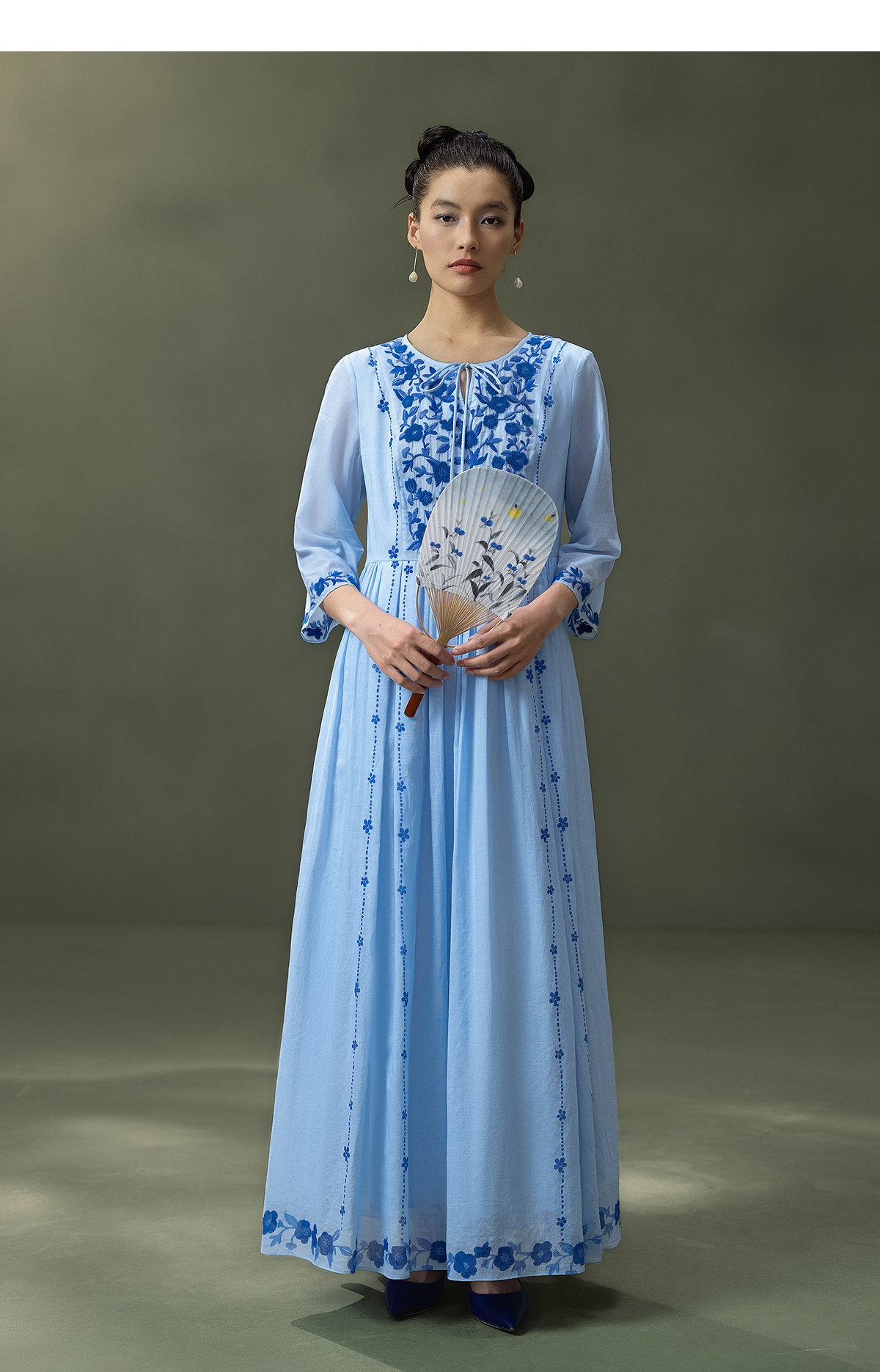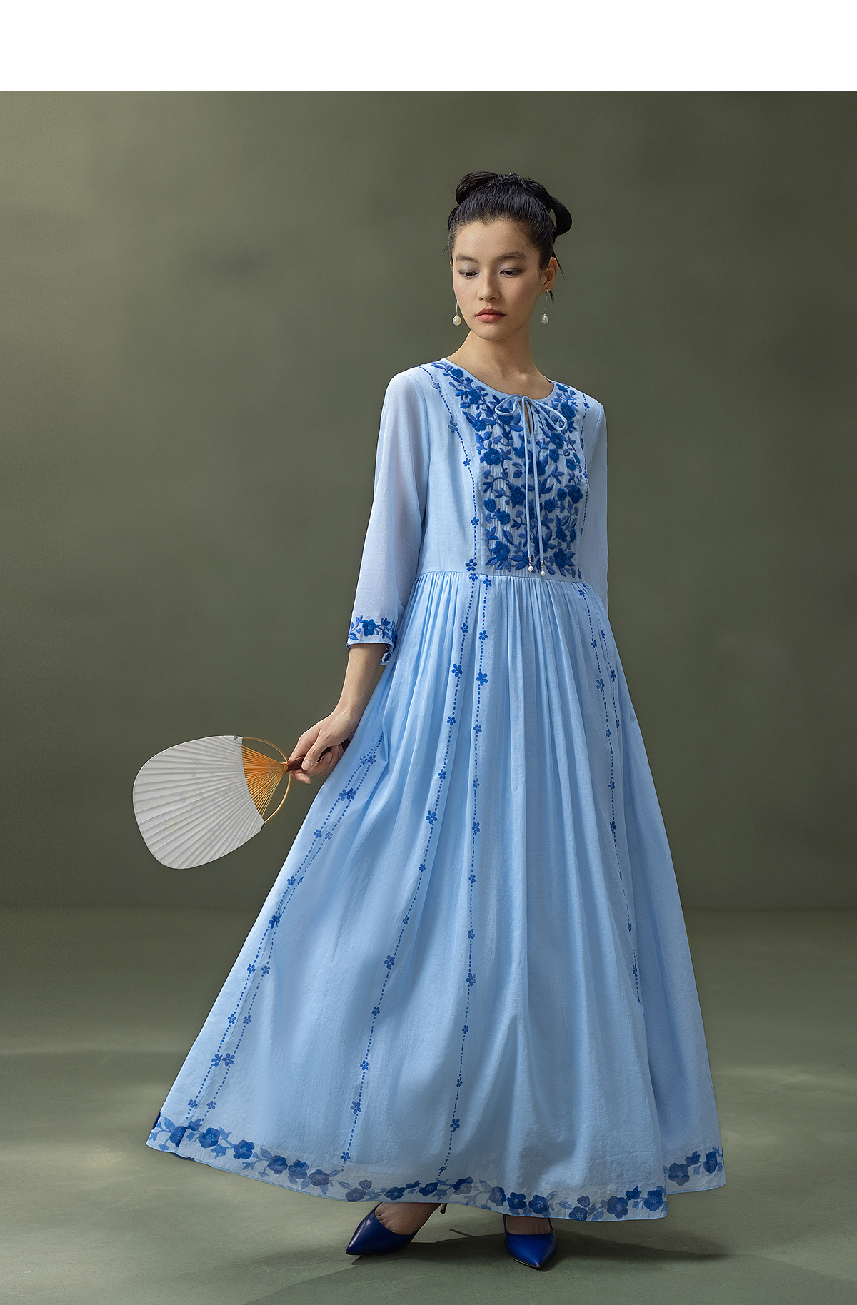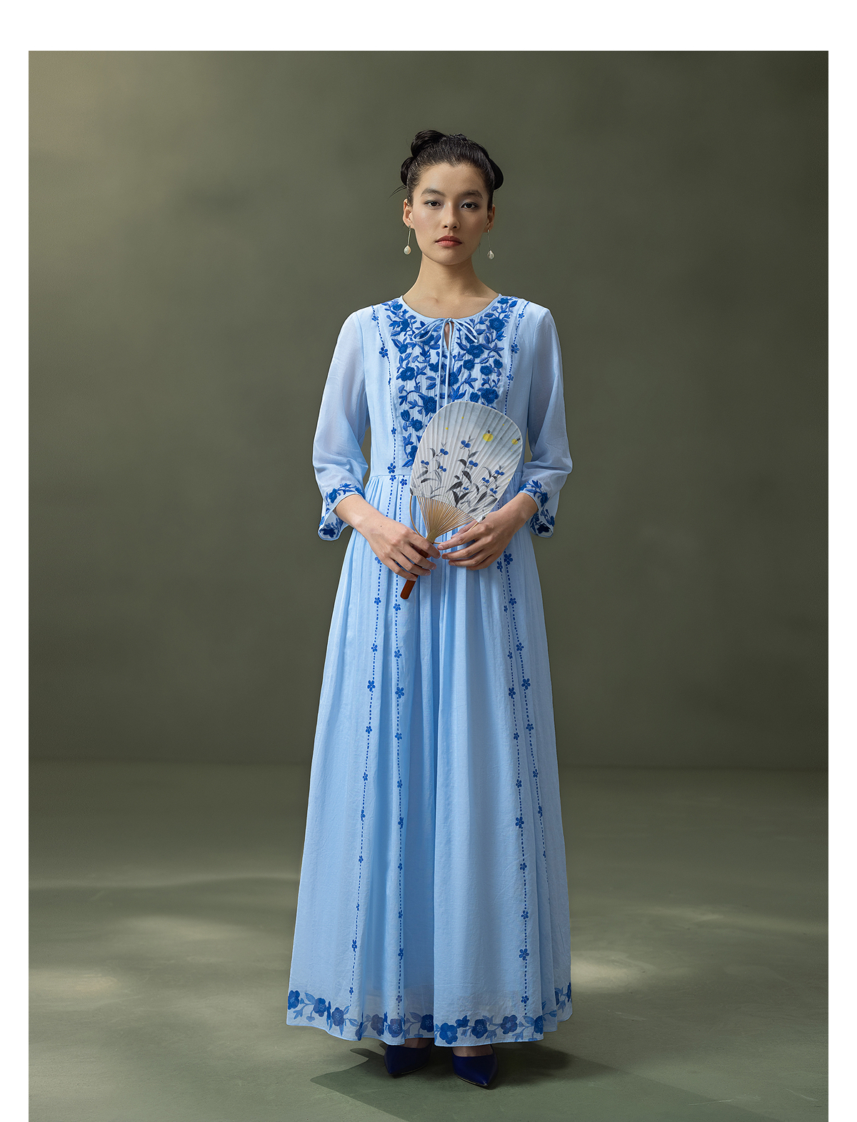 【林栖设计小店】明月花|远空蓝绒绣肌理复古2026夏新款婴儿棉连衣裙子