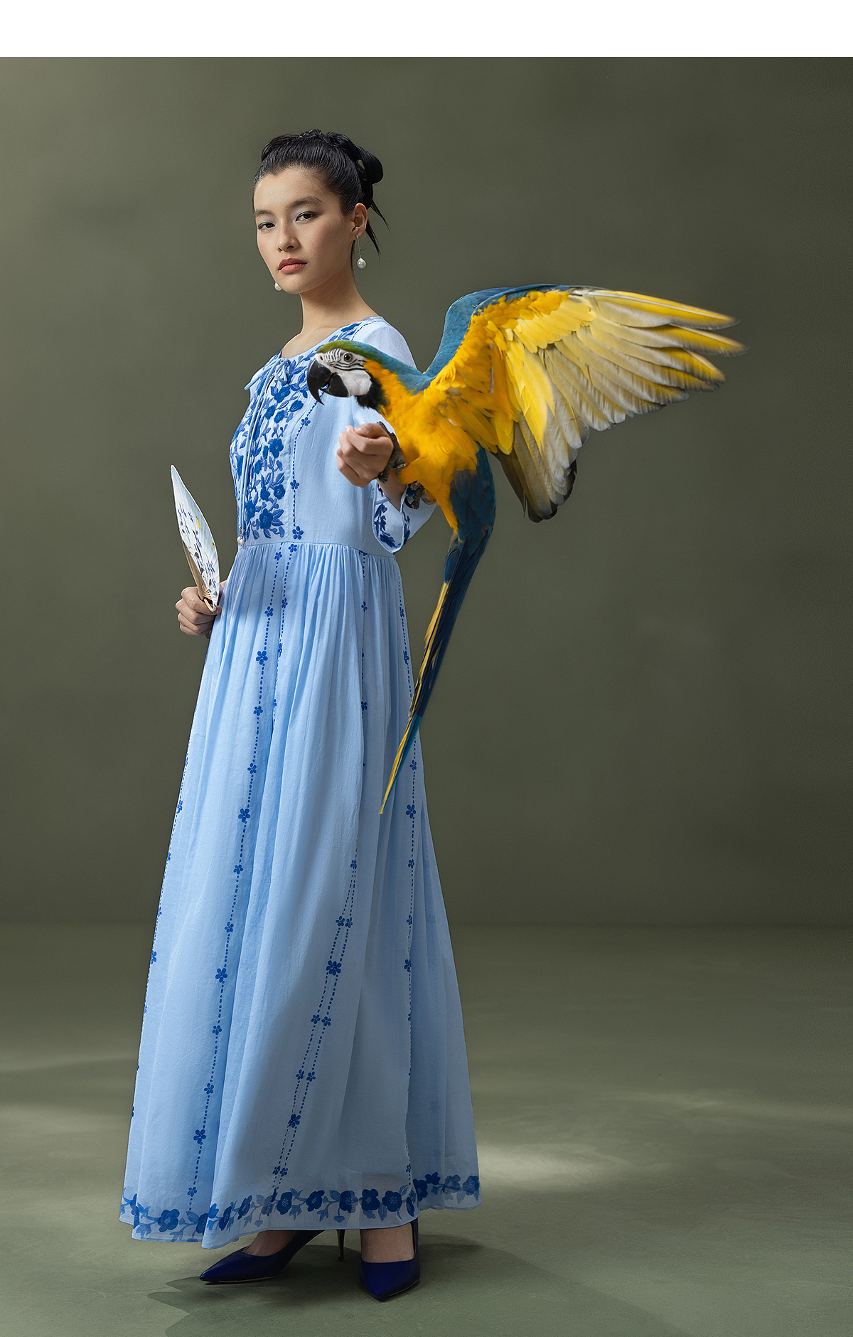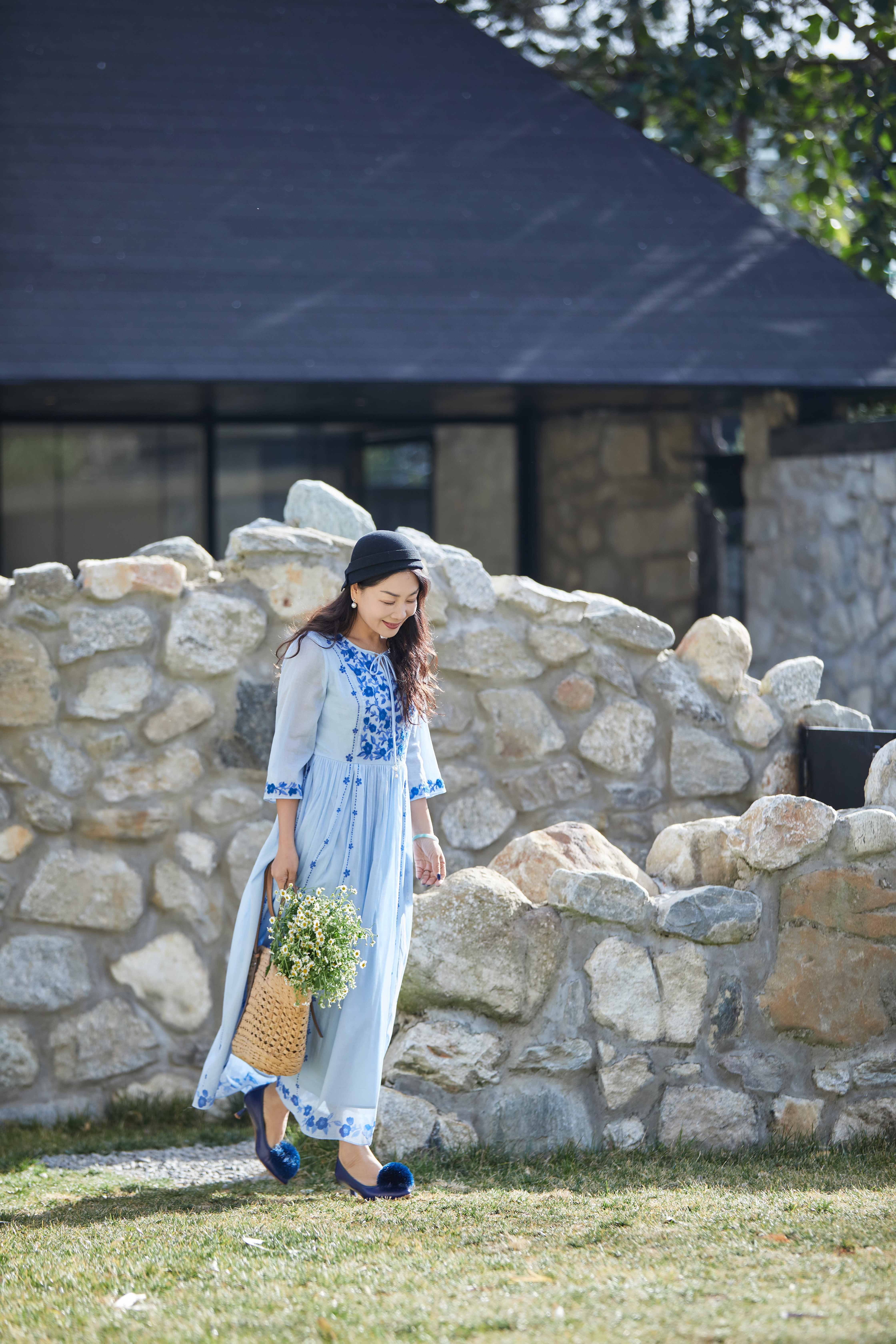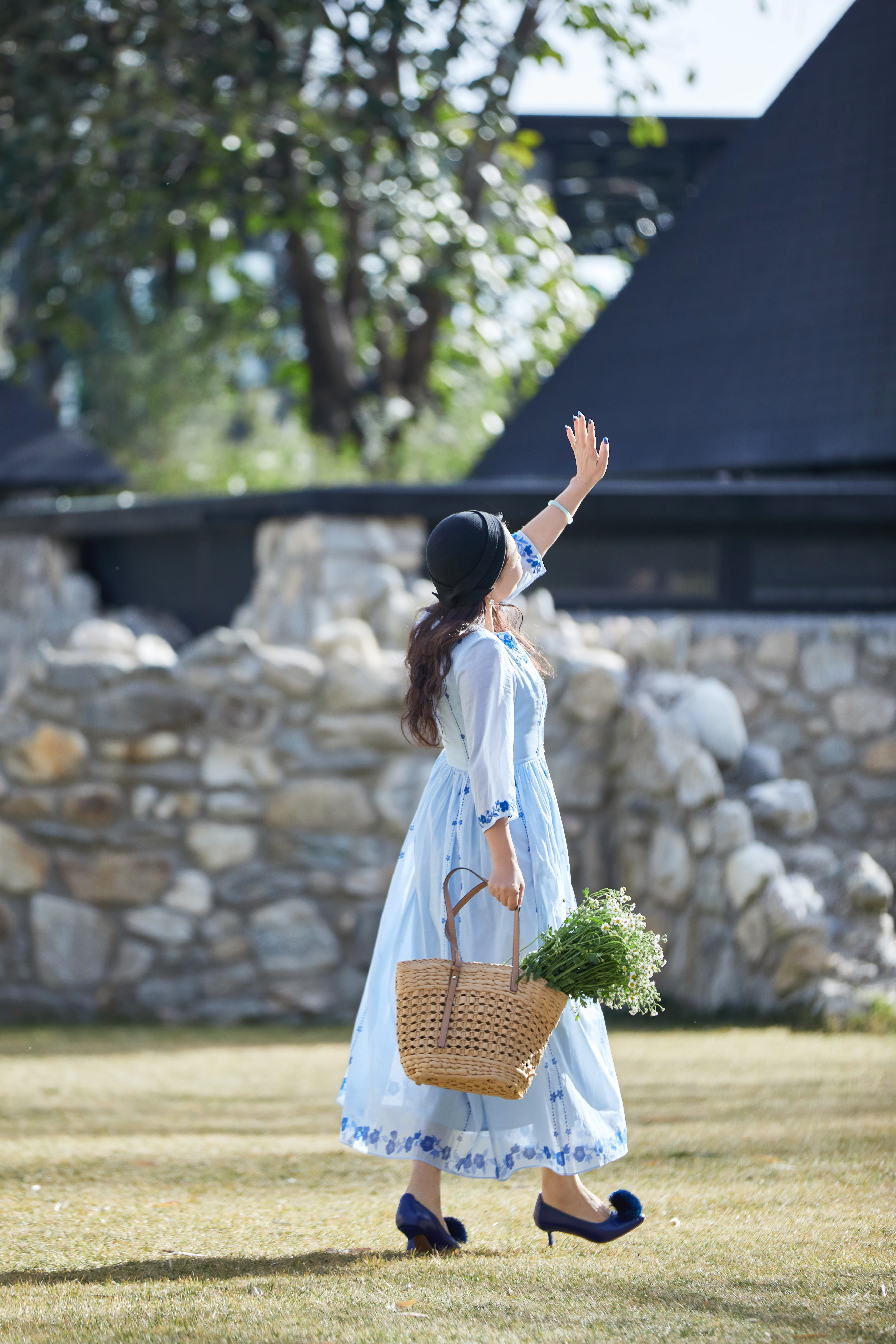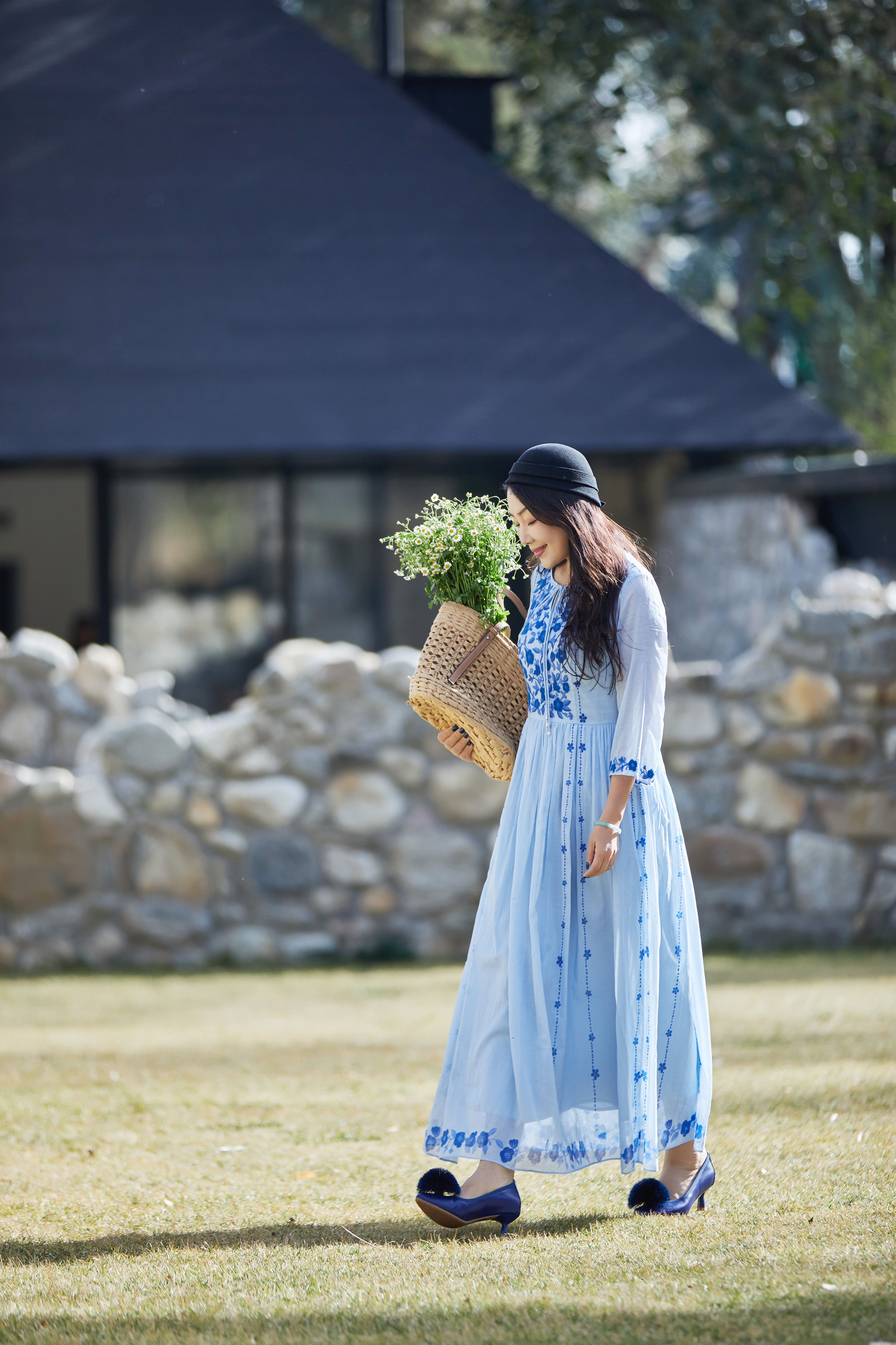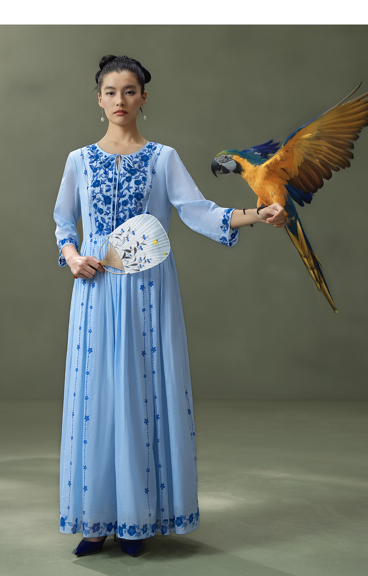 【林栖设计小店】明月花|远空蓝绒绣肌理复古2026夏新款婴儿棉连衣裙子