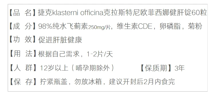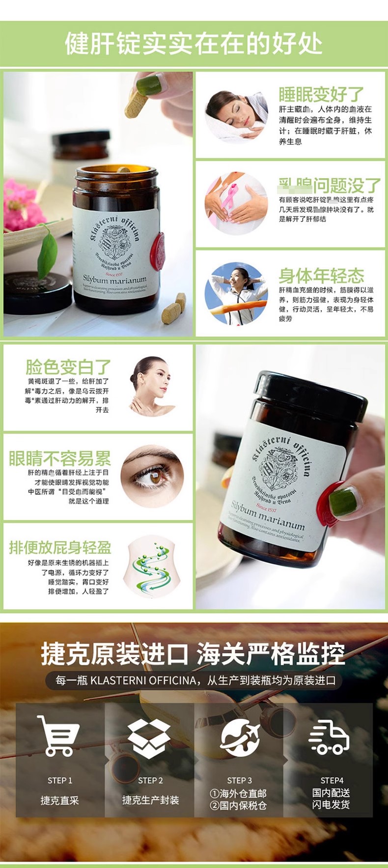 98%高纯水飞蓟素!纯有机原材料水飞蓟!始于1537年皇室御用!捷克克拉斯特健肝锭奶蓟草解酒片护肝片 失眠√ 脂肪旰√ 任何旰问题√ 日期2028年之后