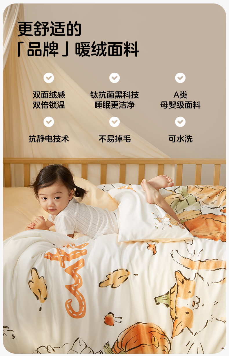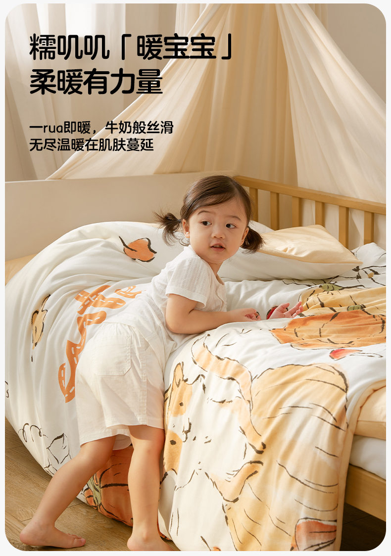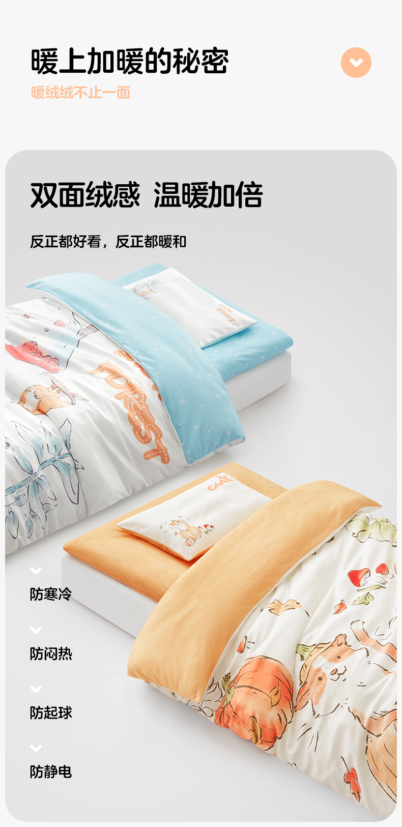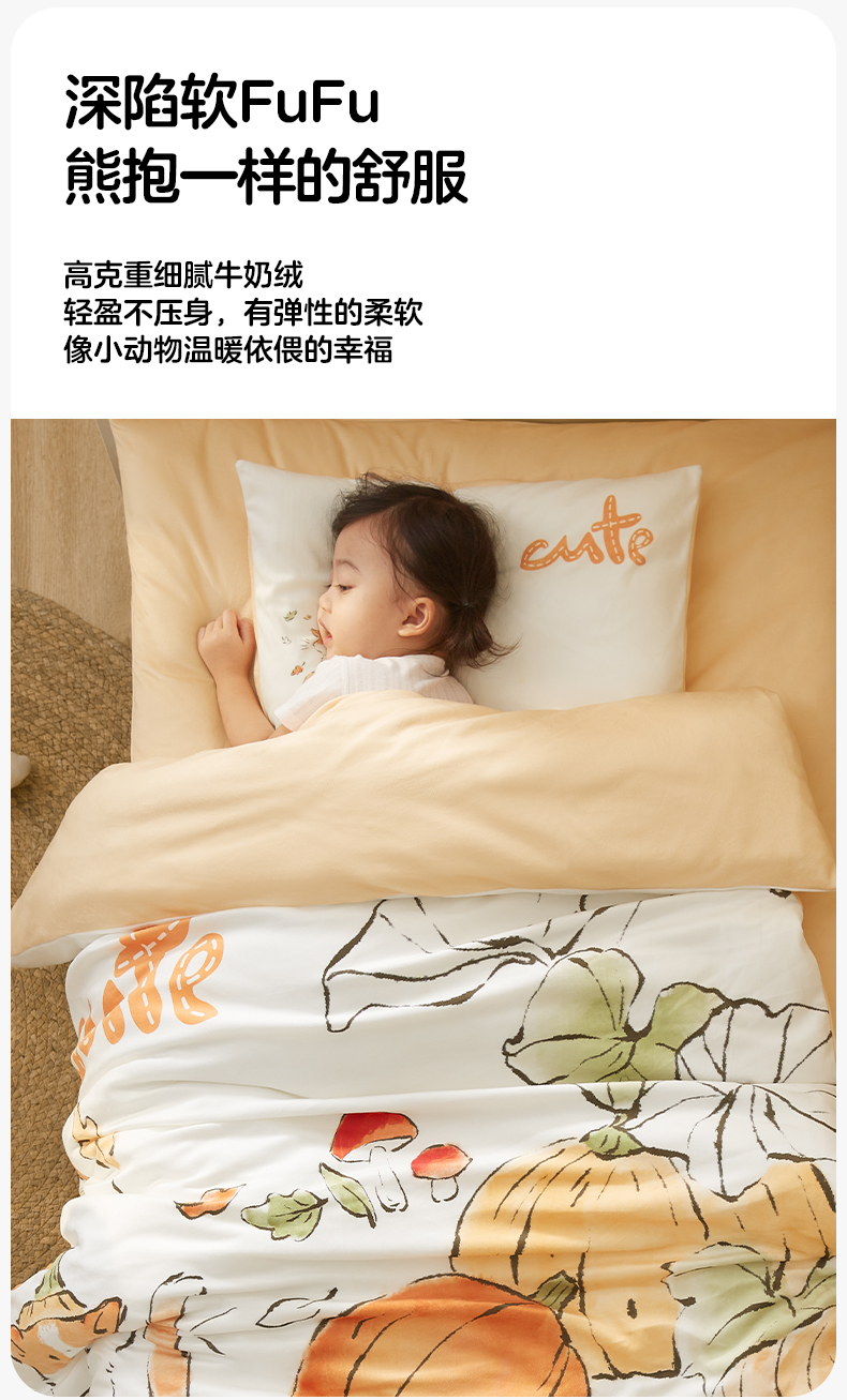 可优比幼儿园被子三件套托班牛奶绒拼接床宝宝被褥六件套秋冬水洗