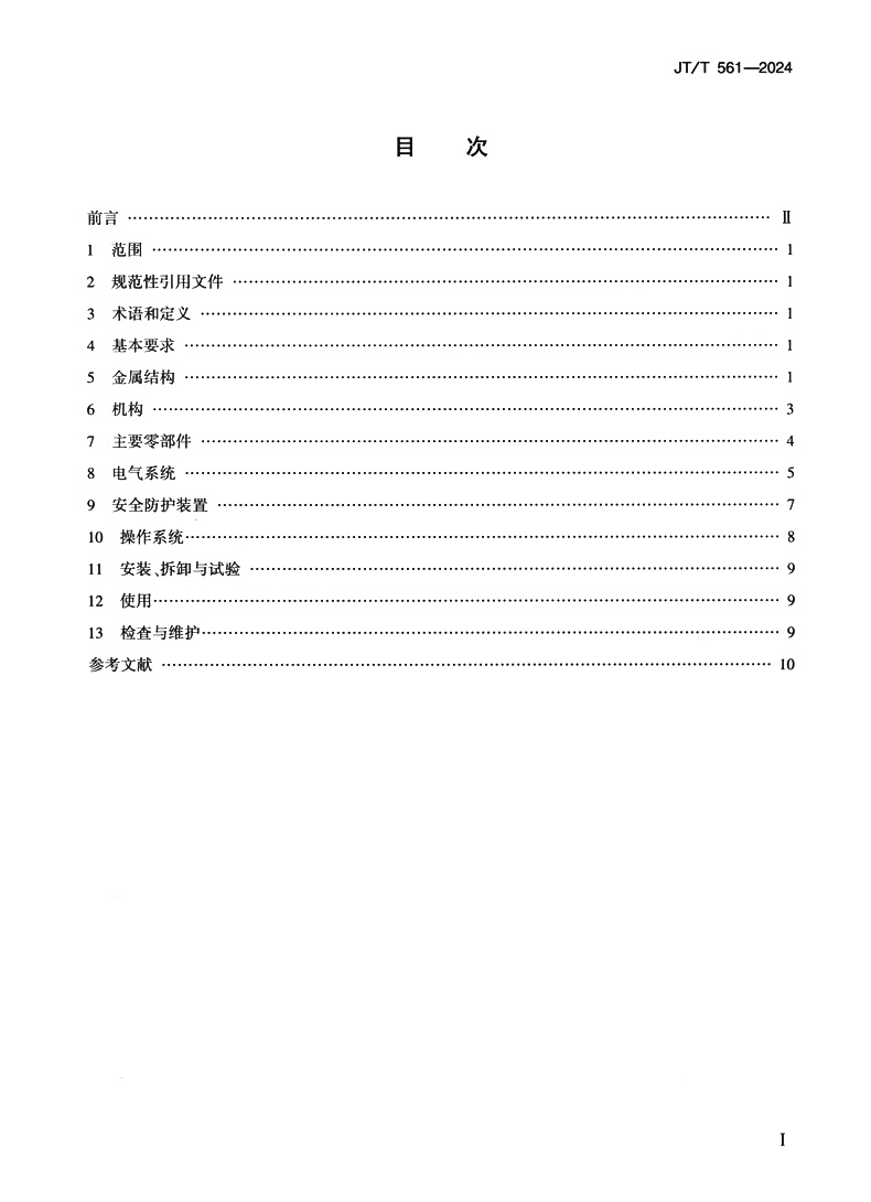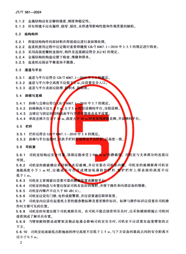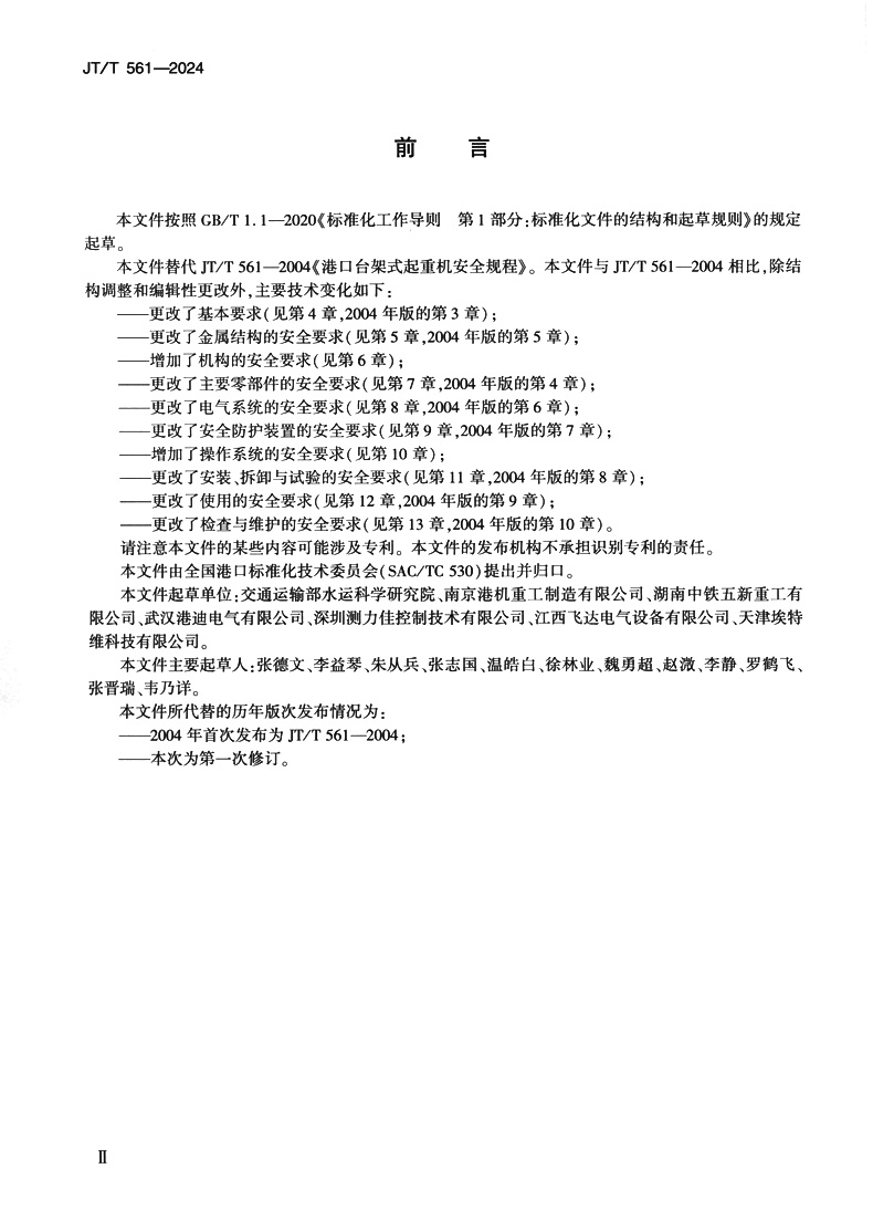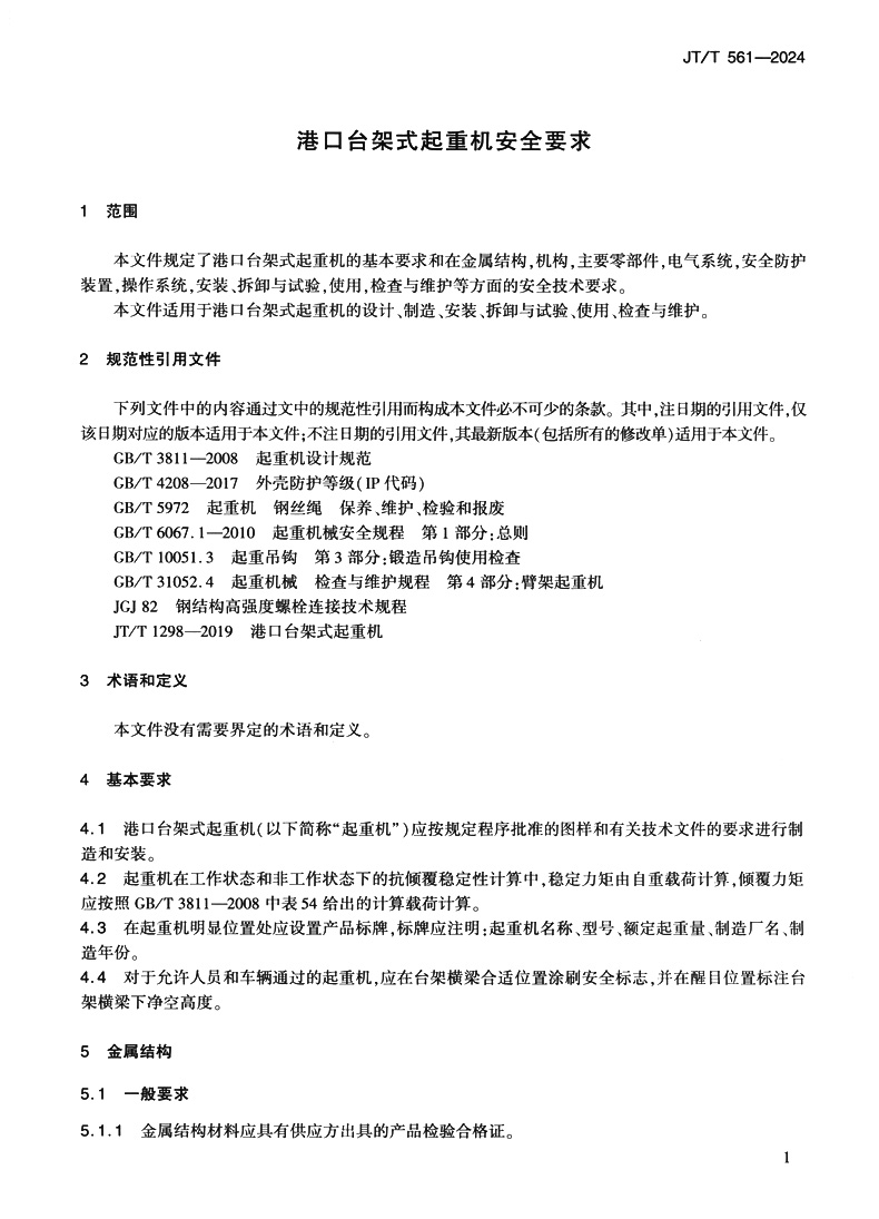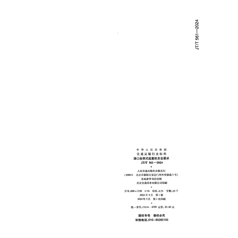 书名:港口台架式起重机安全要求(JT/T 561—2024)