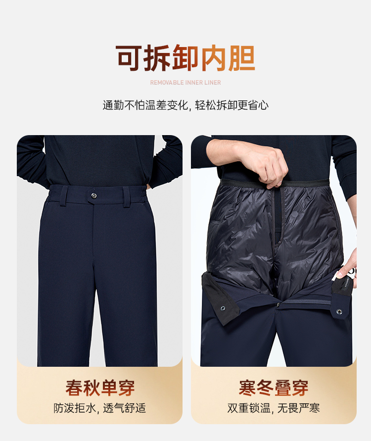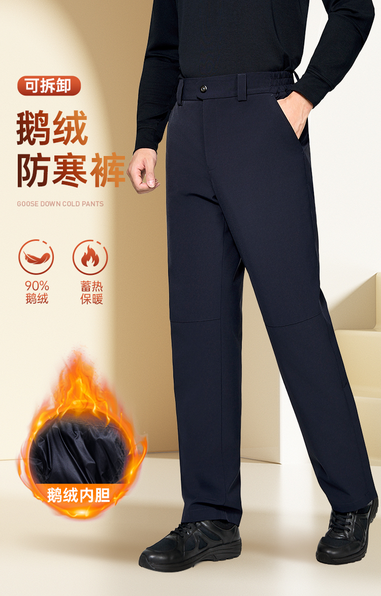 【新式可拆卸鹅绒防寒裤】 男款石墨烯保暖长裤高弹抗皱通勤羽绒西裤休闲直筒加绒裤
