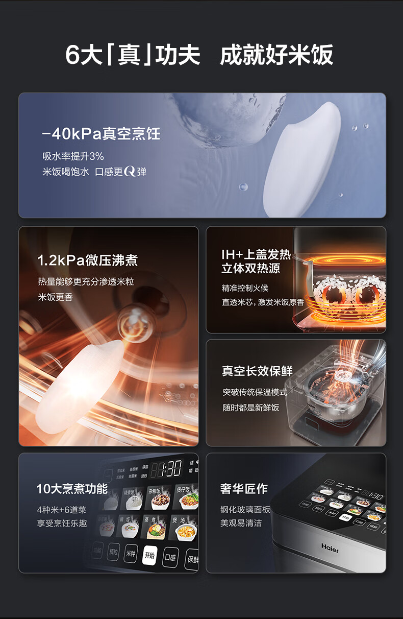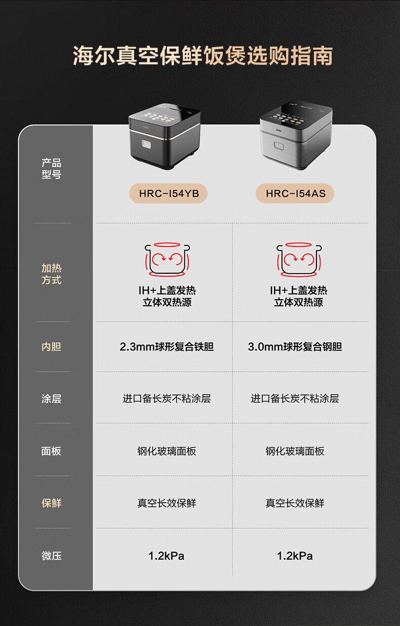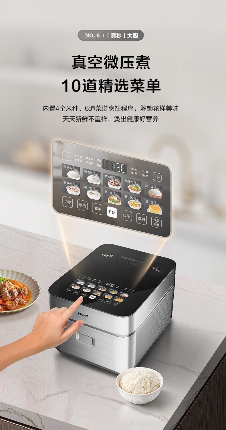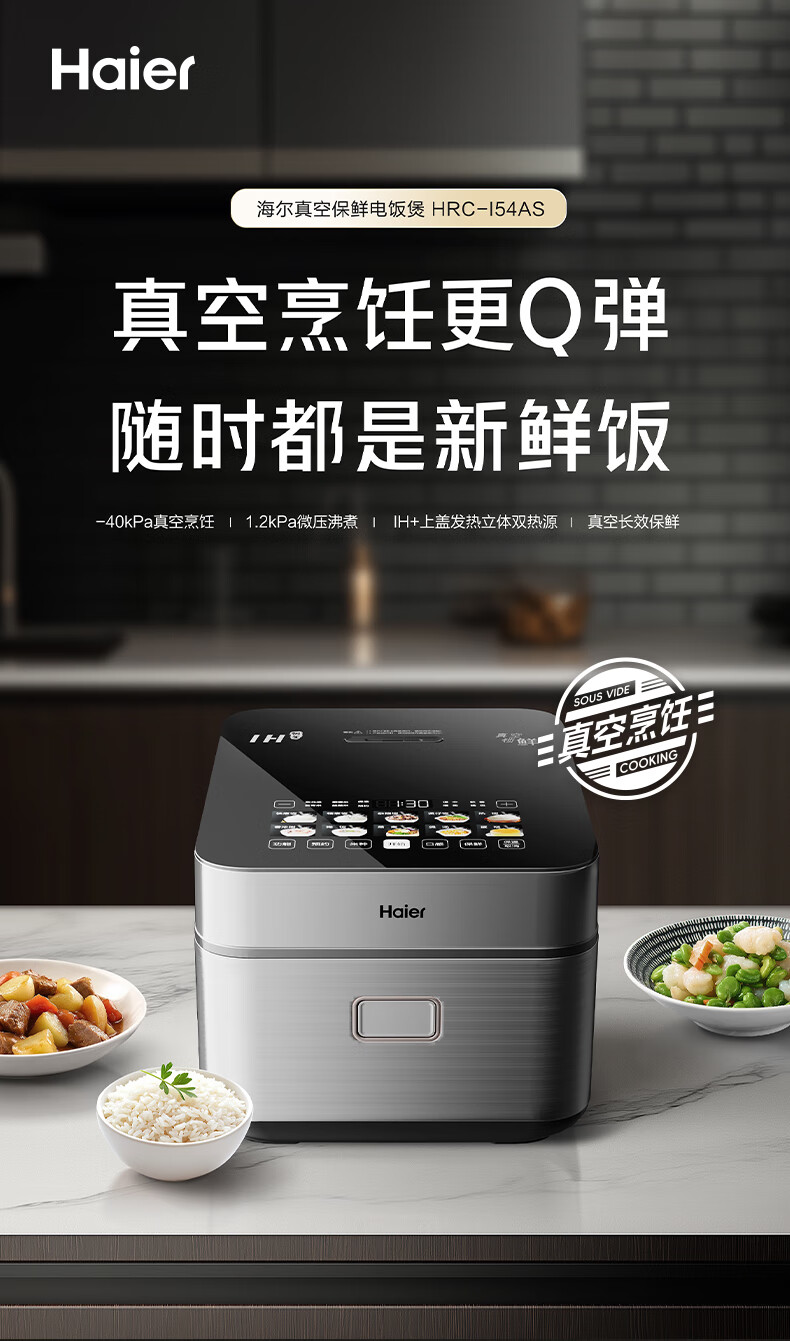 海尔真空保鲜电饭煲 IH+上盖发热立体双热源 微压烹饪 耐磨耐高温不粘24小时智能预约4L大容量电饭煲 HRC-I54AS冰河银 4L