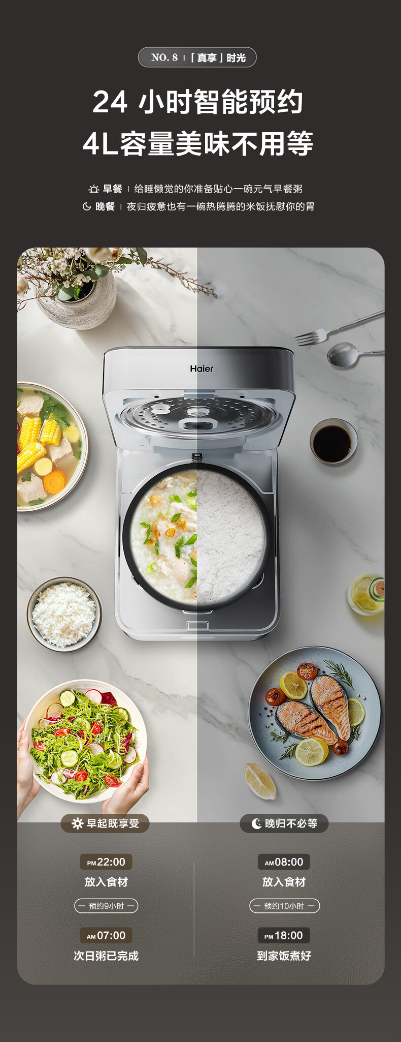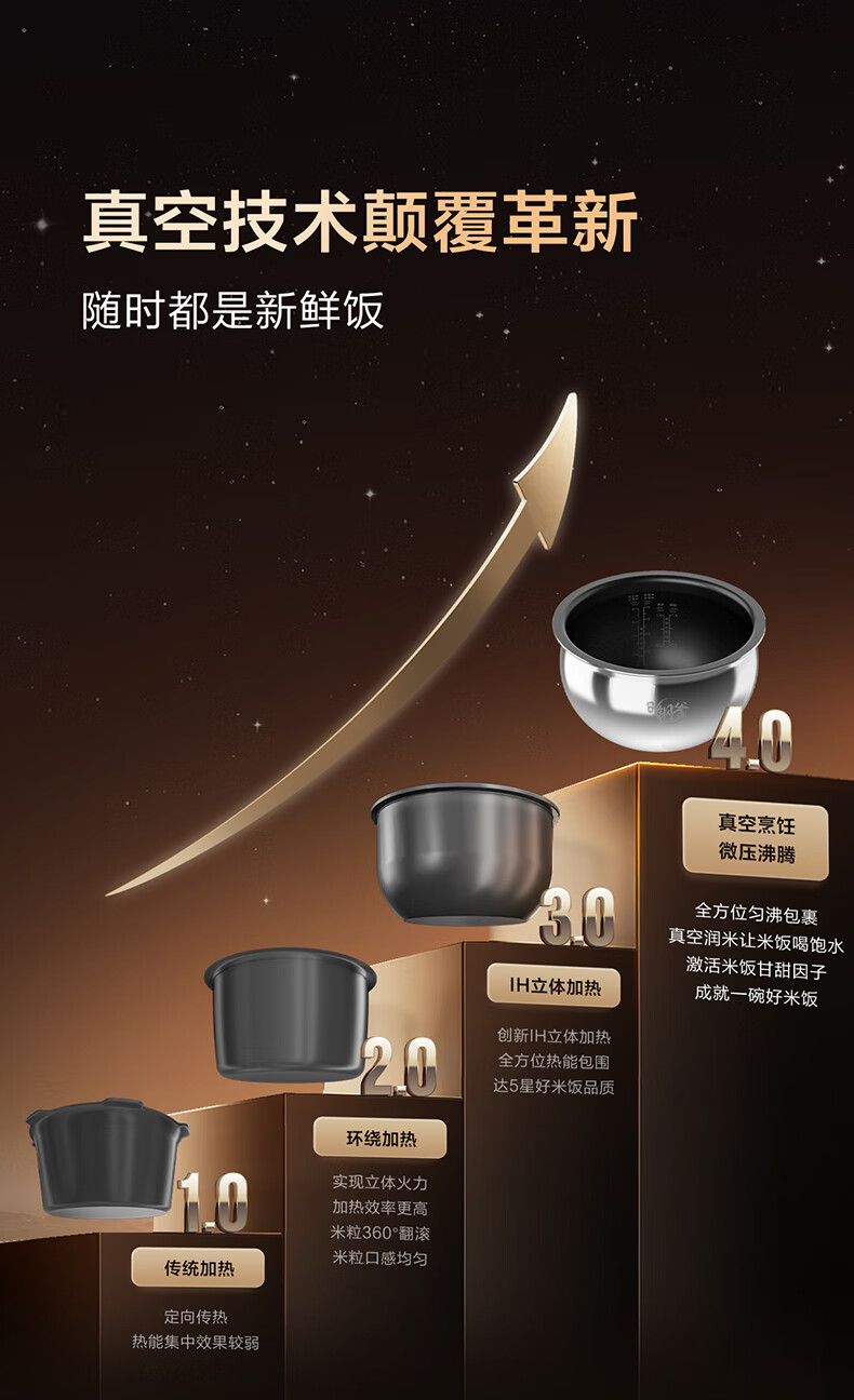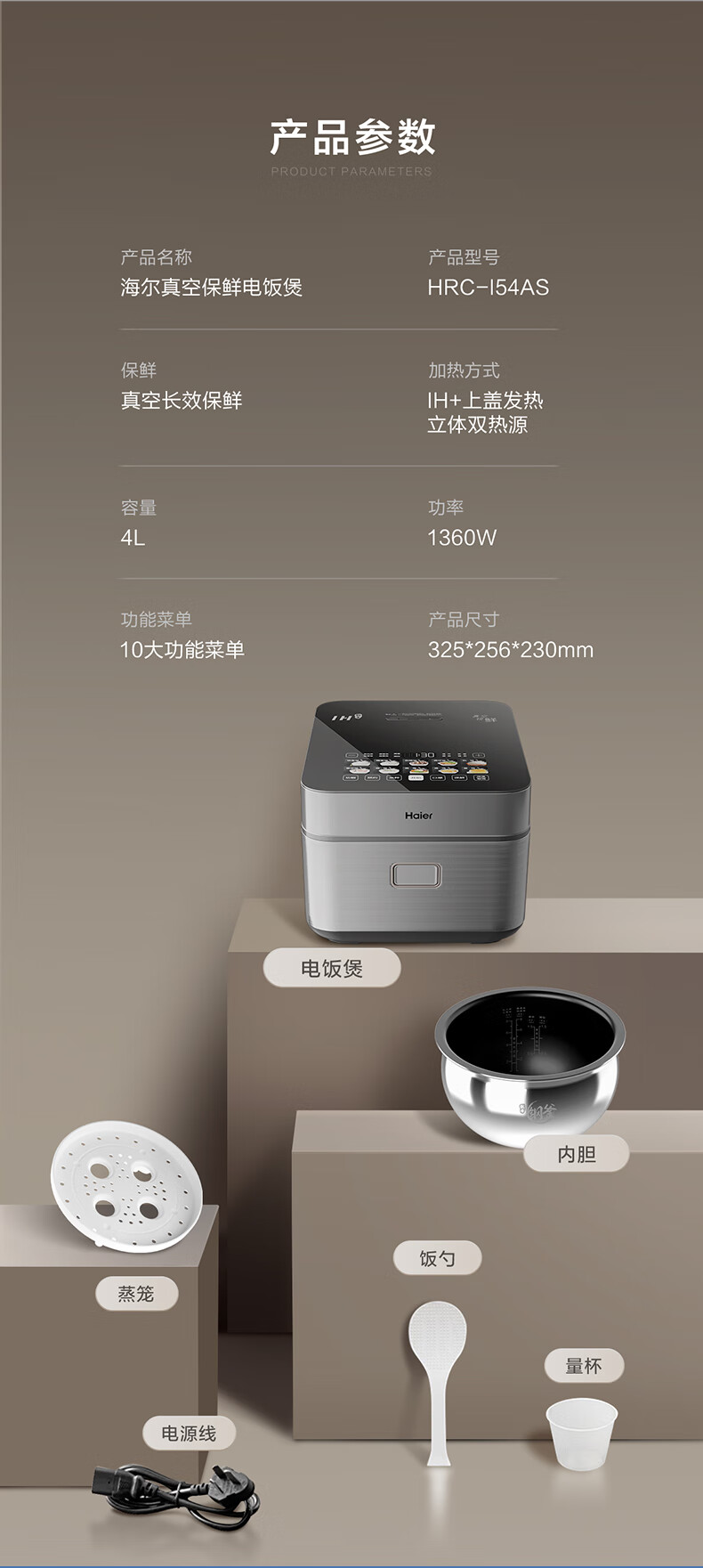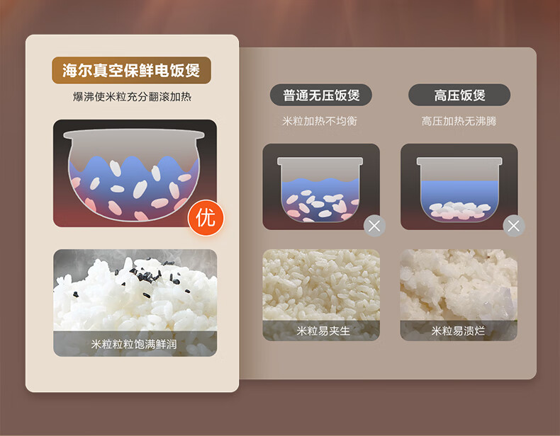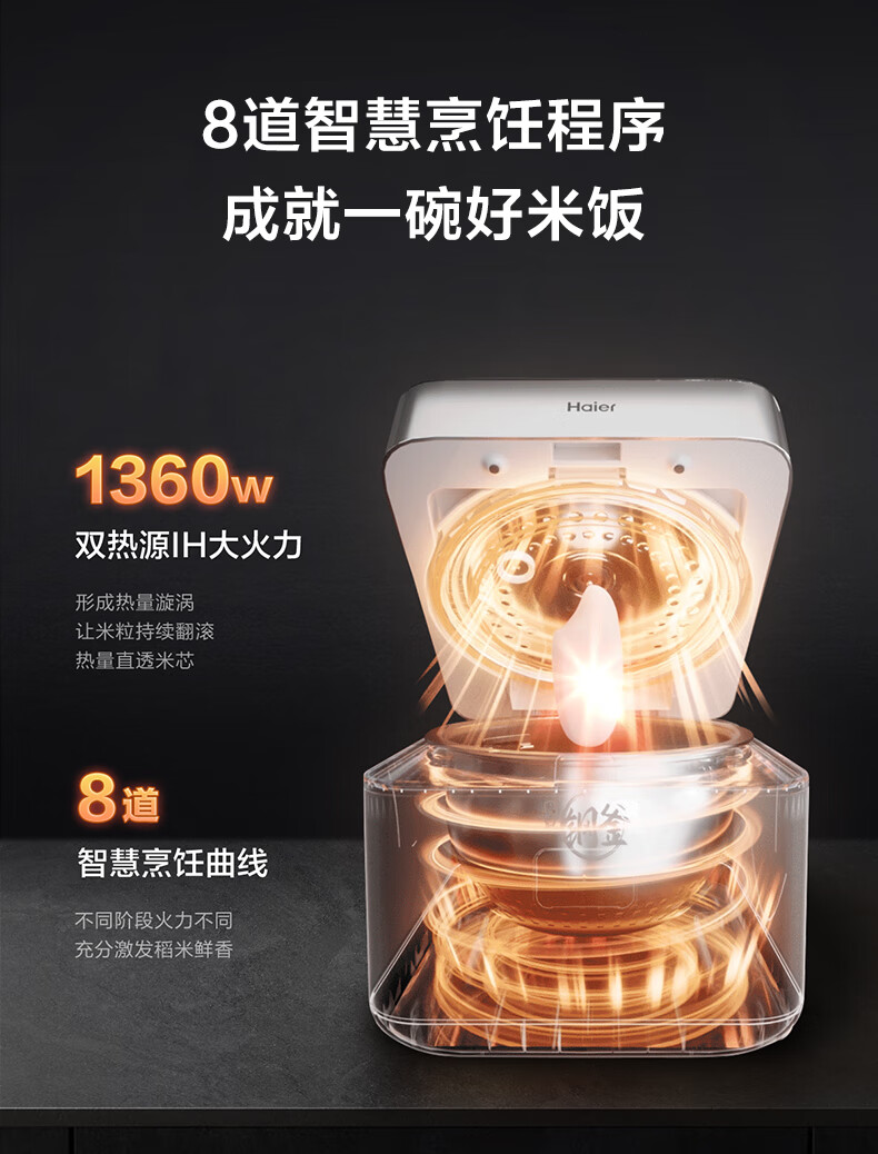 海尔真空保鲜电饭煲 IH+上盖发热立体双热源 微压烹饪 耐磨耐高温不粘24小时智能预约4L大容量电饭煲 HRC-I54AS冰河银 4L