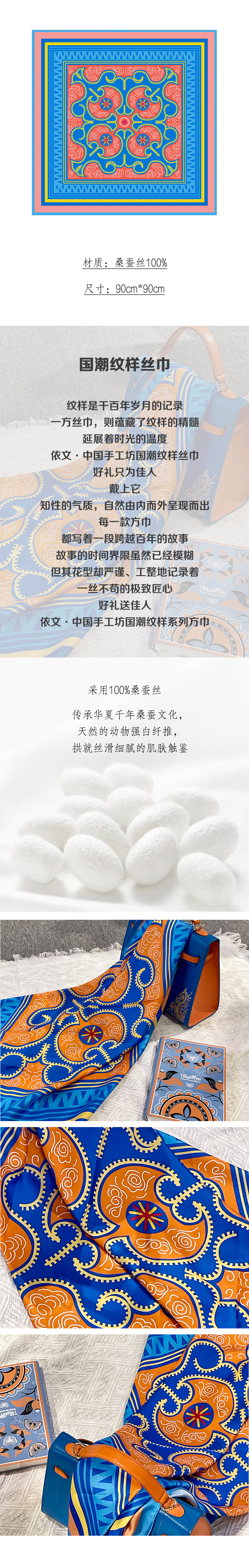 深山集市 手卷边苗族涡纹印花丝巾