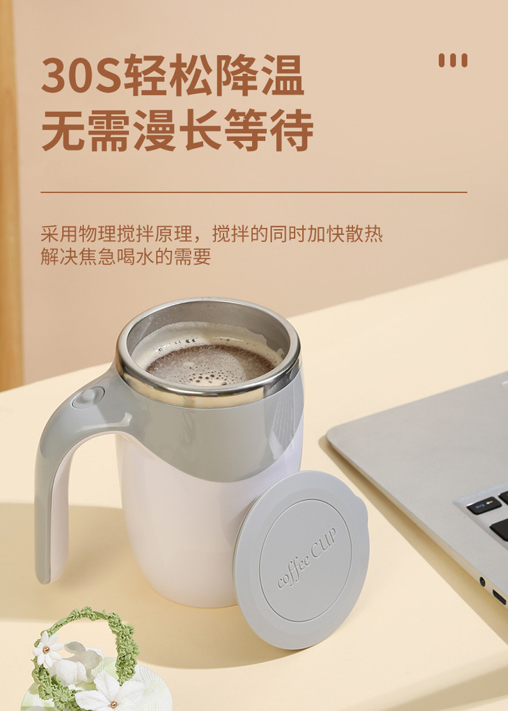 【自动咖啡杯搅拌杯】磁力旋转电动咖啡杯304不锈钢自动搅拌杯