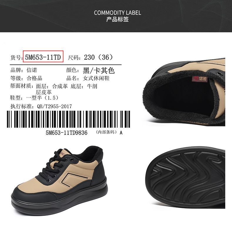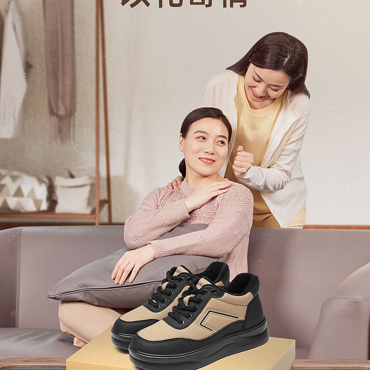 信诺妈妈鞋女软底舒适运动休闲鞋2025冬季新款中老年加绒保暖棉鞋5M653-11TD