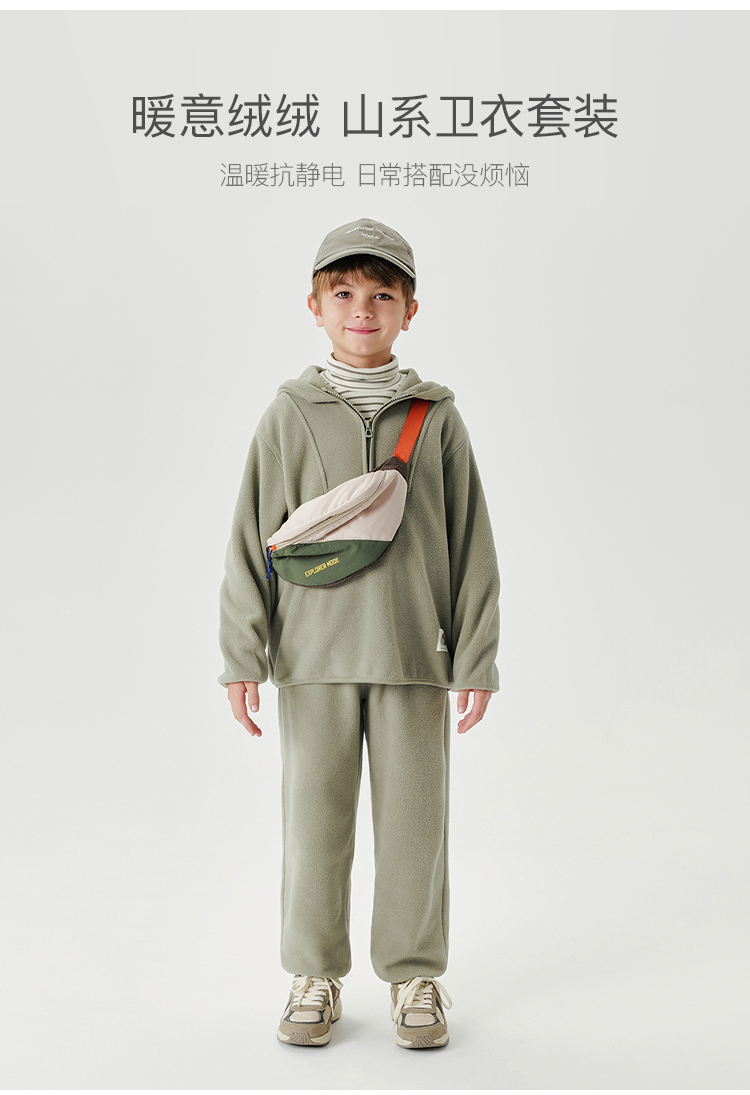 马克珍妮男童山系户外摇粒绒运动套装儿童卫衣套装秋冬新款241059