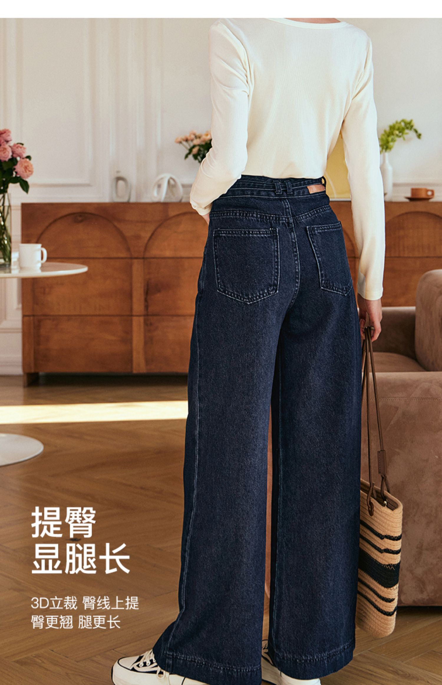 OLrain欧芮儿直筒牛仔裤女秋冬2023年新款高腰显瘦百搭微喇长裤