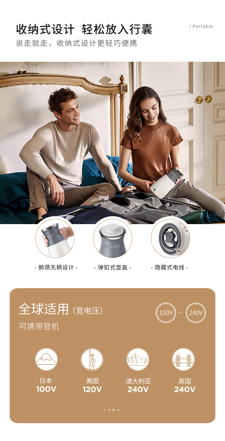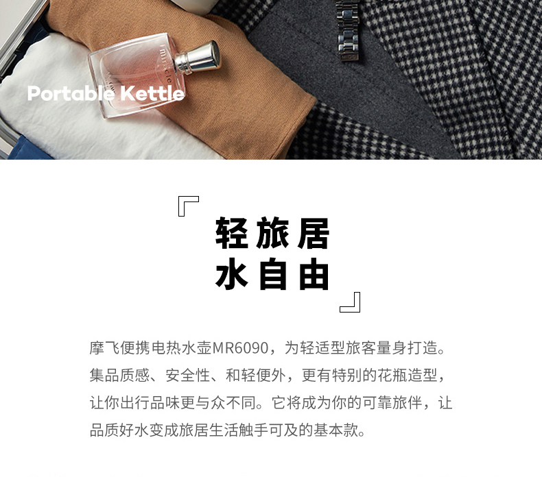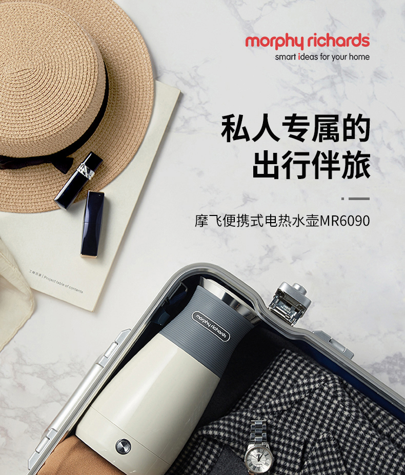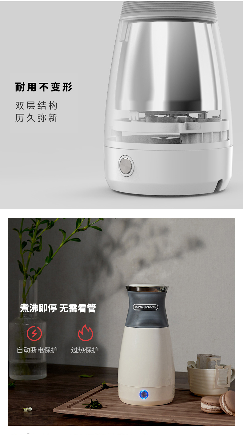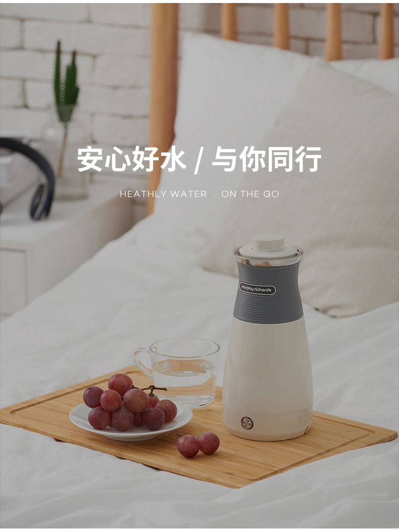 摩飞电器(Morphyrichards)电水壶小型便携式烧水壶旅行电热水壶不锈钢双层防烫MR6090 灰色