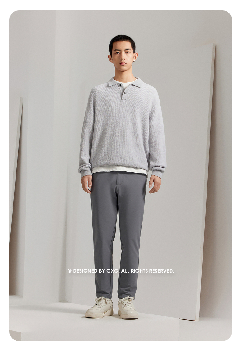 GXG男装 斜纹针织绒感西裤保暖通勤休闲裤男士长裤 2024冬季热卖