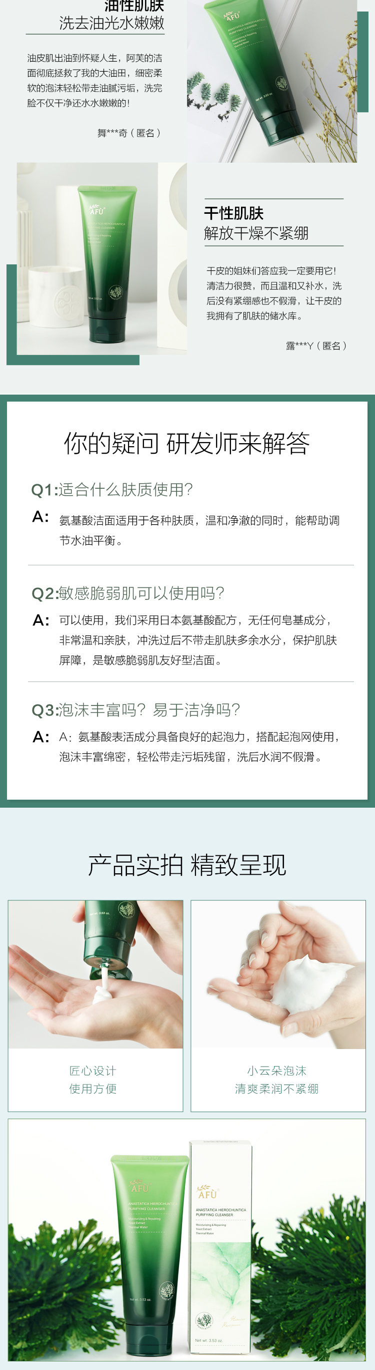 【新品首发 购物即送精华资格】阿芙复活草净润洁面乳 保湿修护JPY带授权招加盟代理