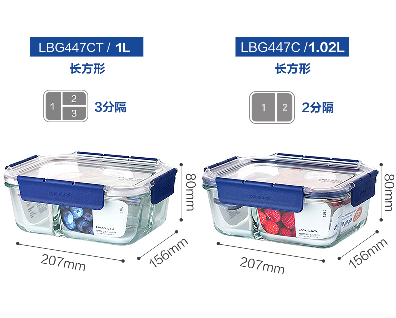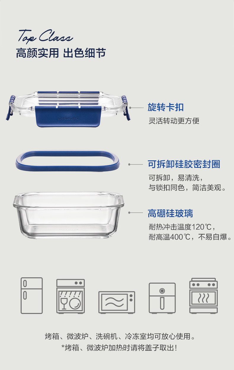 乐扣乐扣新款耐热玻璃保鲜盒密封容器玻璃饭盒微波炉烤箱加热