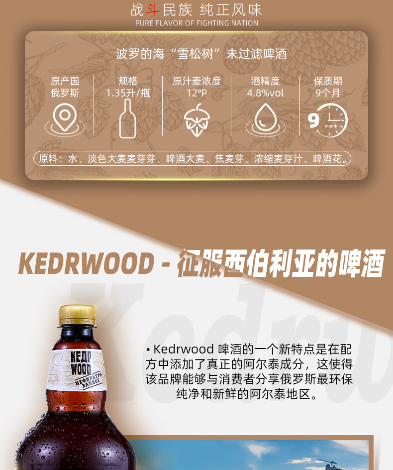 【分仓直发包邮】雪松树未过滤啤酒1.35L*3瓶