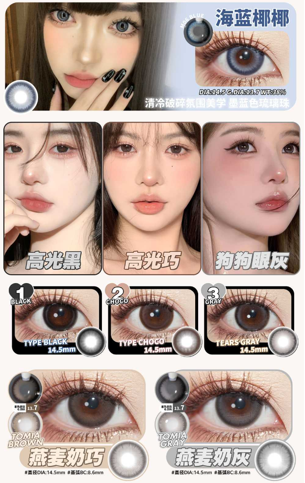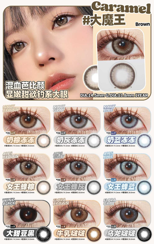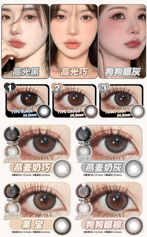 【小红书推荐款】clairecolor,双高光巧,年抛/直径14.5/着色13.7, 138/一副,268/两副,298/三副 最高度数有1000度