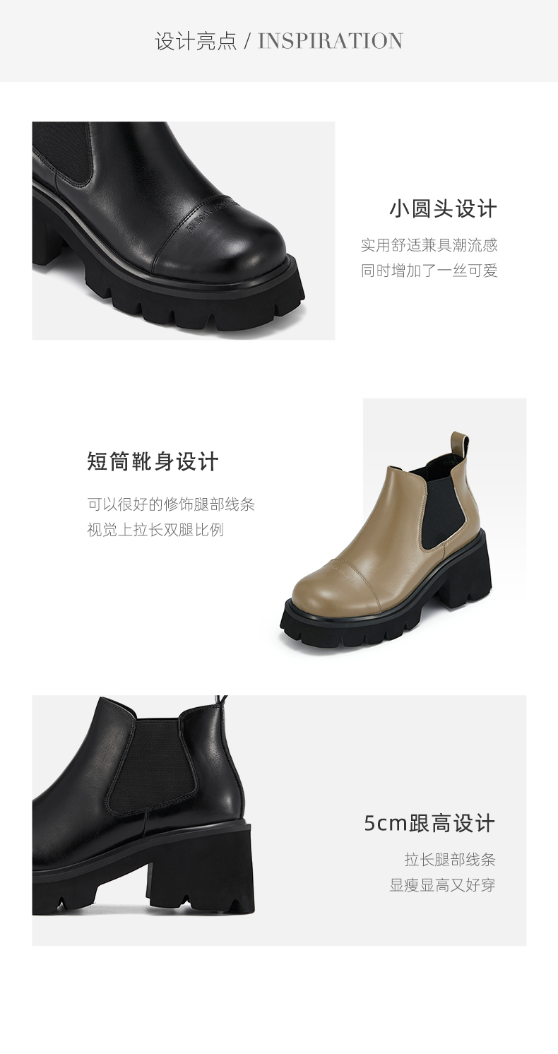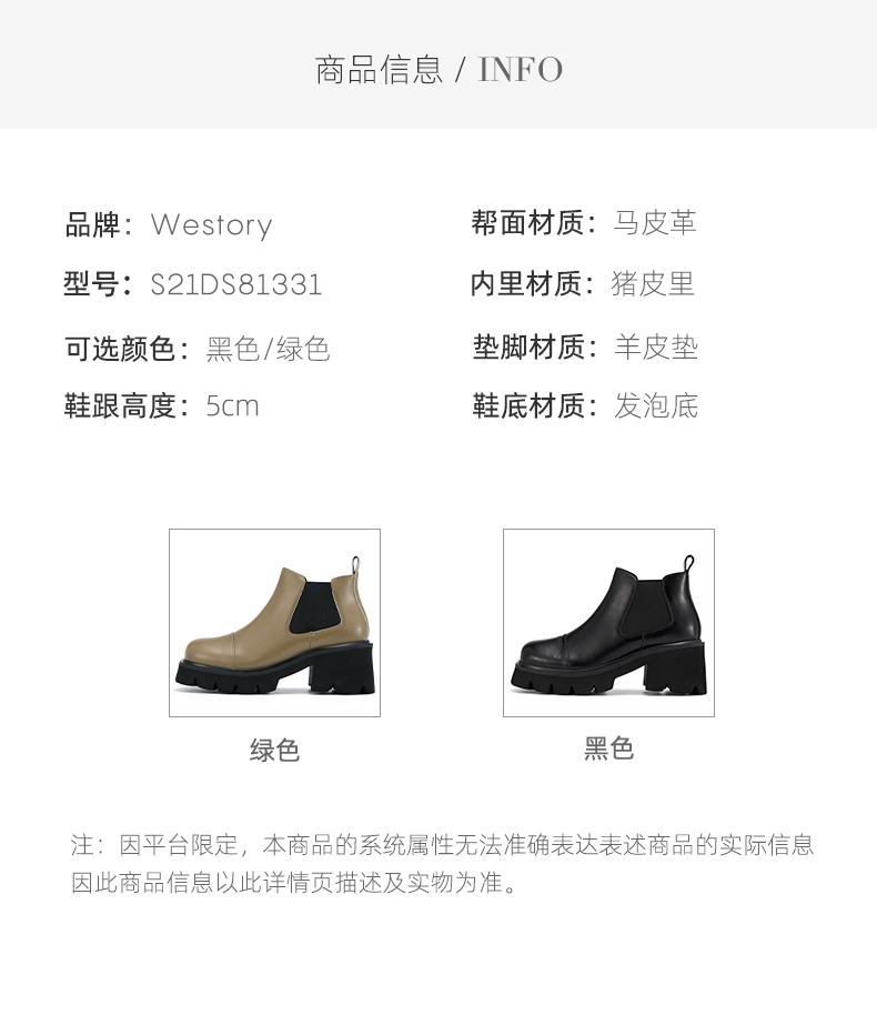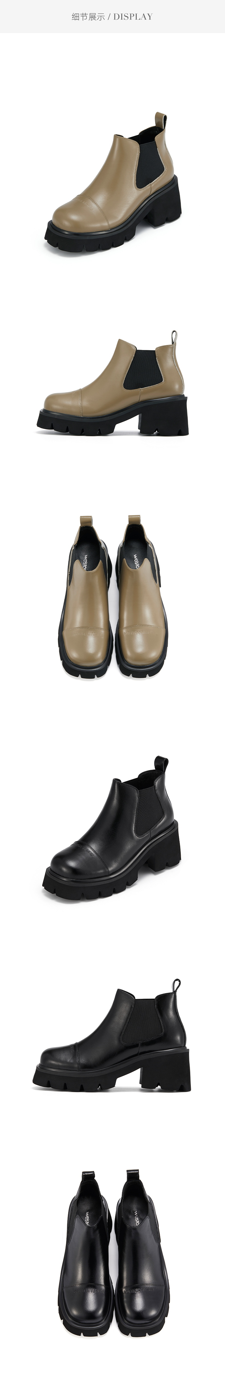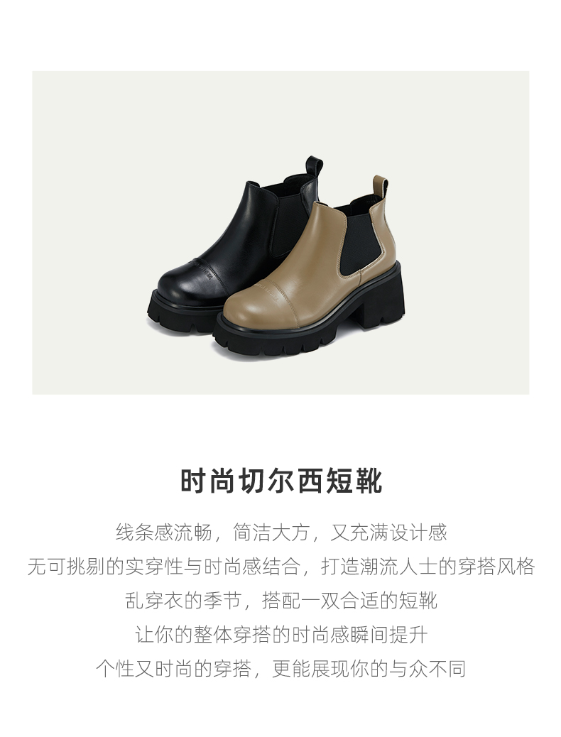westory2021秋季新品时尚切尔西短靴粗跟烟筒靴车风S21DS81331