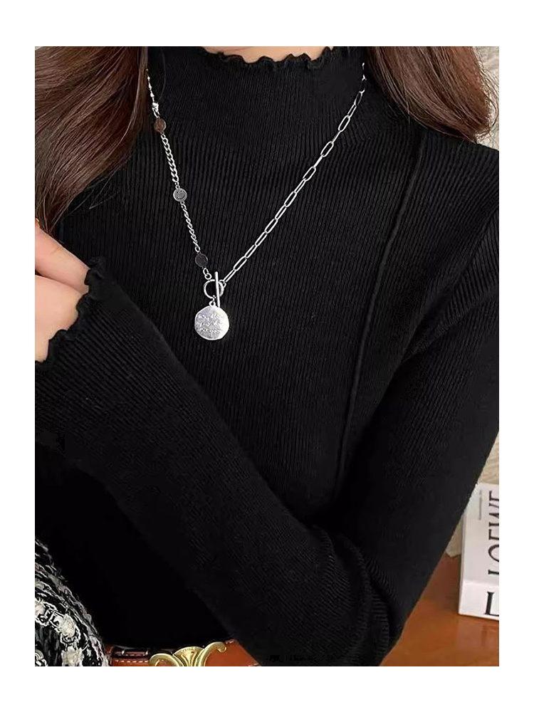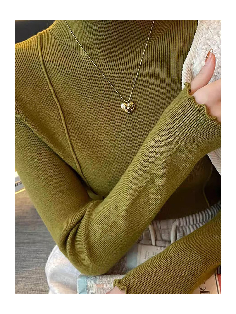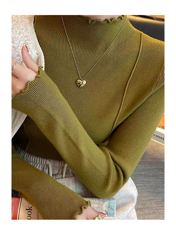 奢姿2025秋冬新款大码女装半高领打底上衣胖妹妹木耳边洋气针织衫9844369166