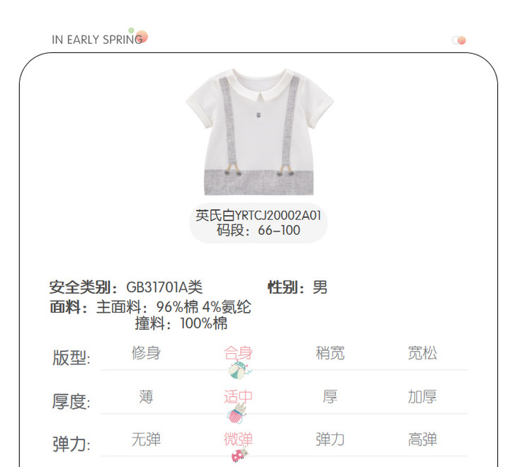 英氏-童衣类(夏)D0英针翻领短套衣 英氏白