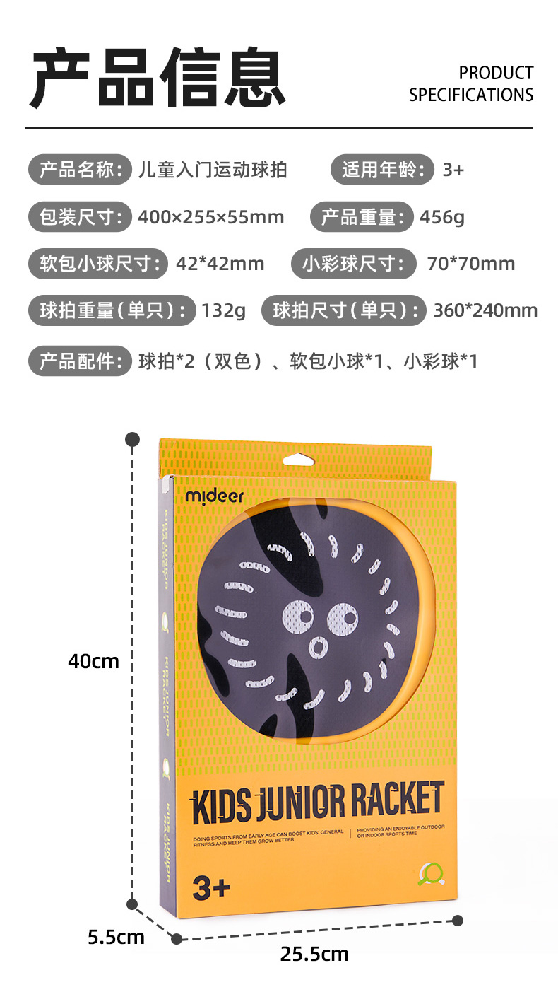 mideer弥鹿儿童球拍2岁3-4室内运动网球宝宝益智玩具户外训练套装