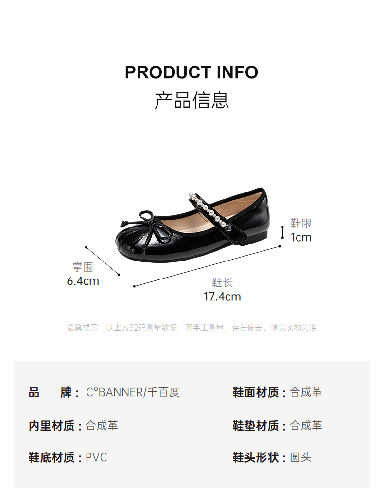 千百度童鞋蝴蝶结平底单鞋女童单鞋洋气可爱玛丽珍鞋A25150052