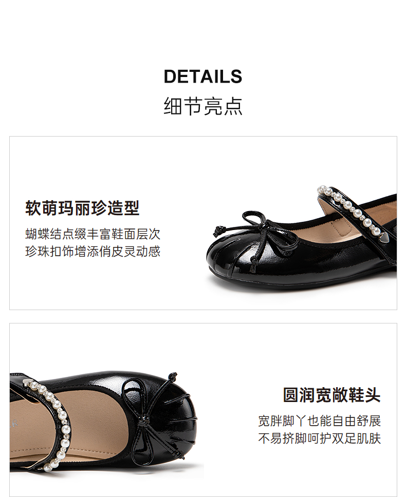 千百度平底浅口单鞋女秋季拼接芭蕾舞鞋小香风羊皮晚晚鞋A24482401