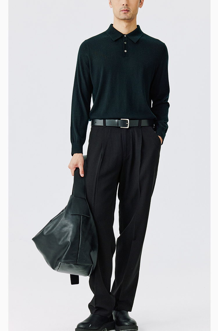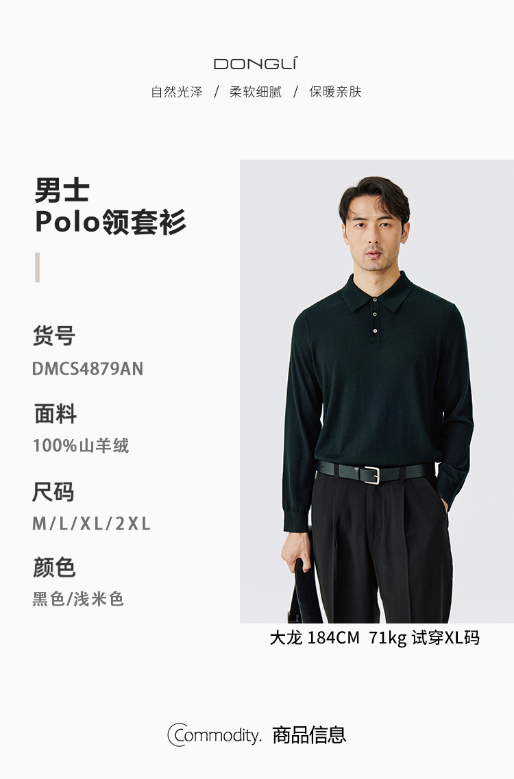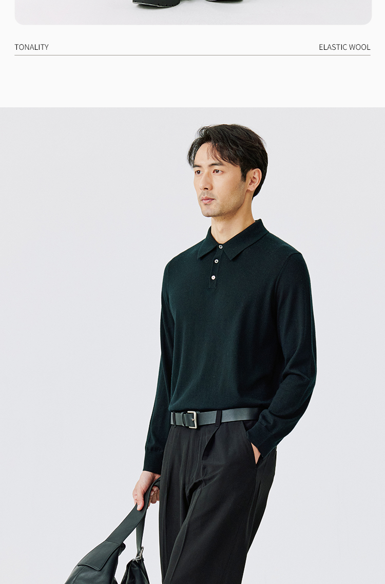 东黎 • 精纺男士秋冬针织POLO衫百搭简约纯色休闲长袖 4879