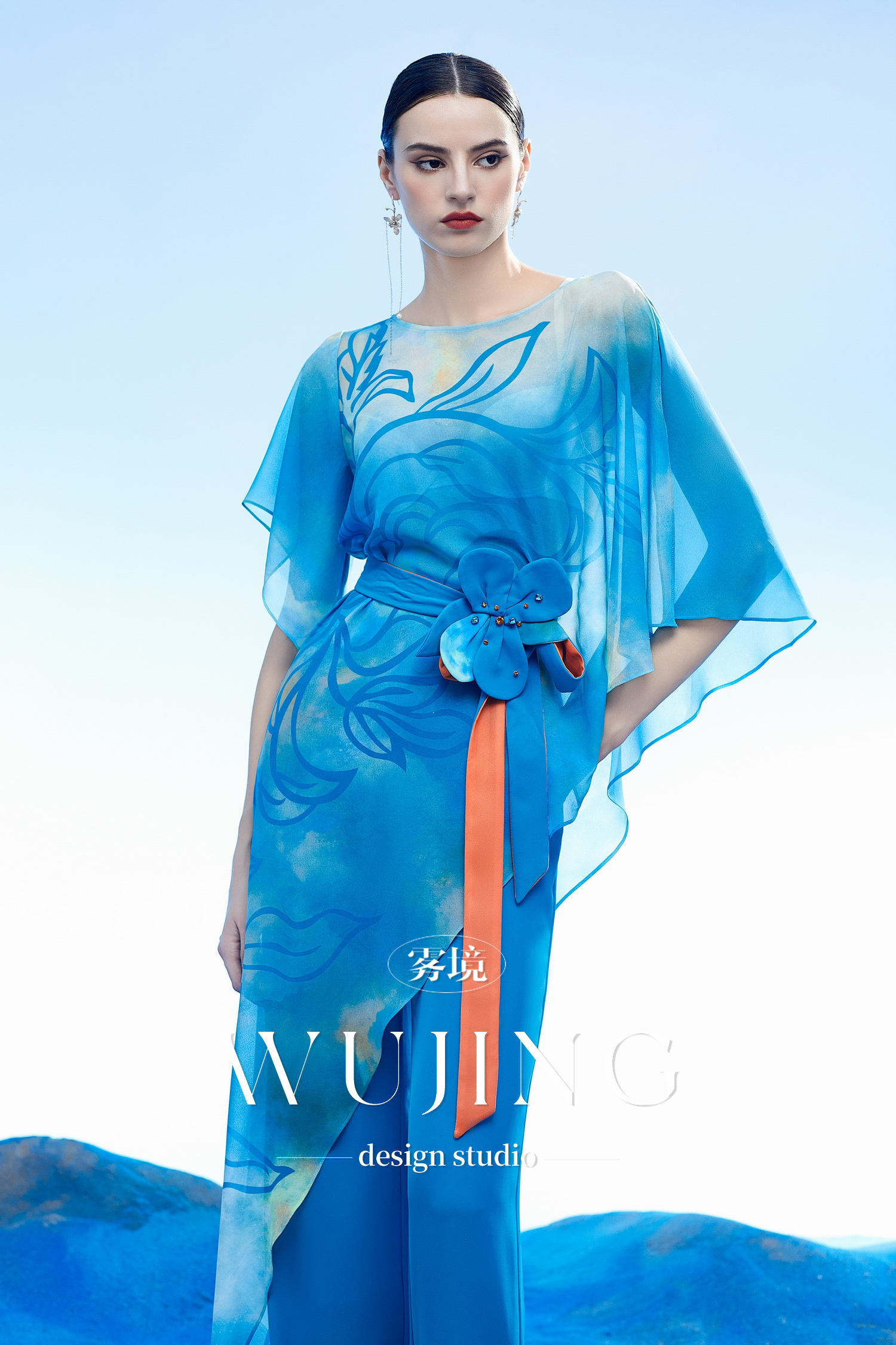 3204081 穹灵疏影 进口纹理蜂窝缎裤子 雾境