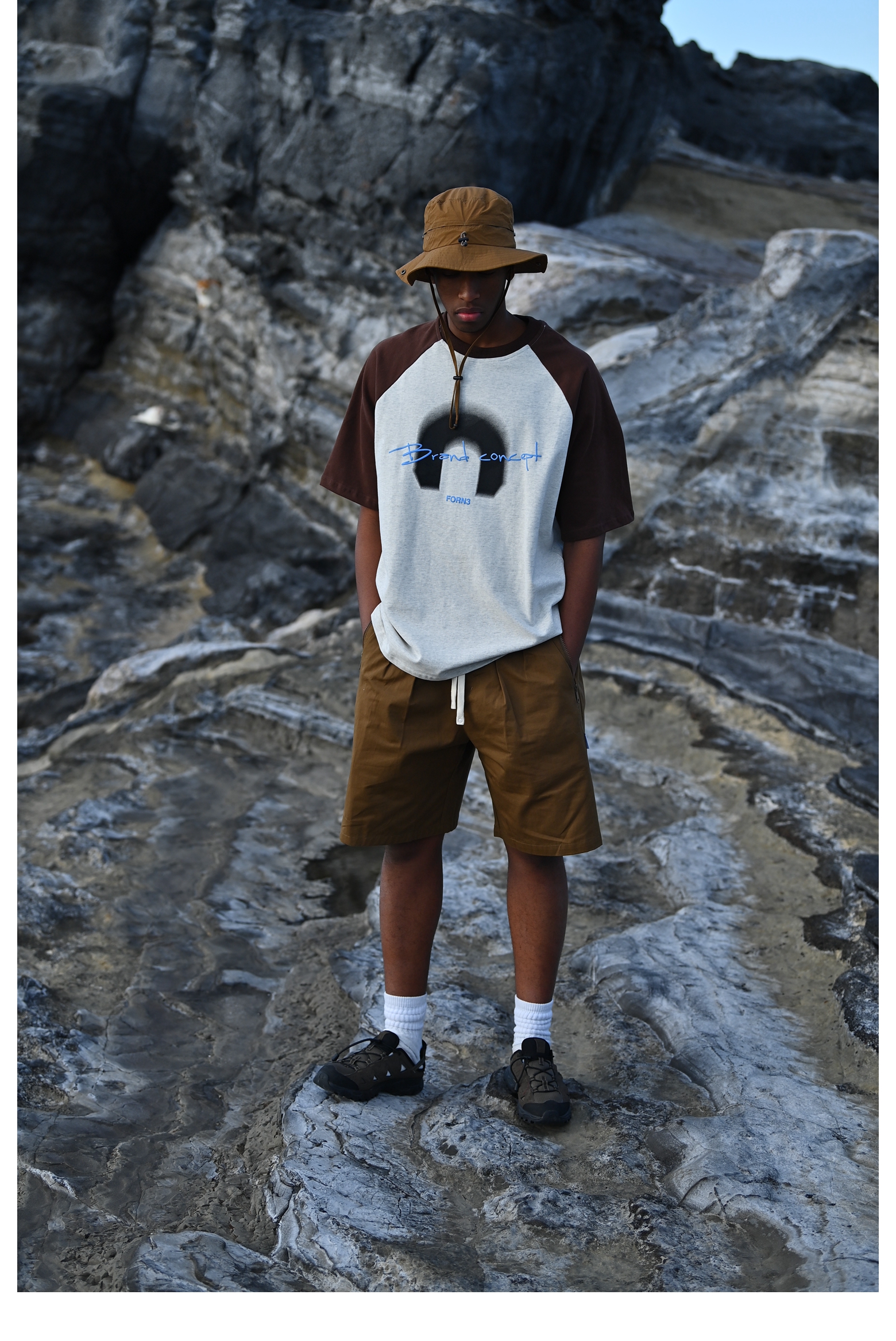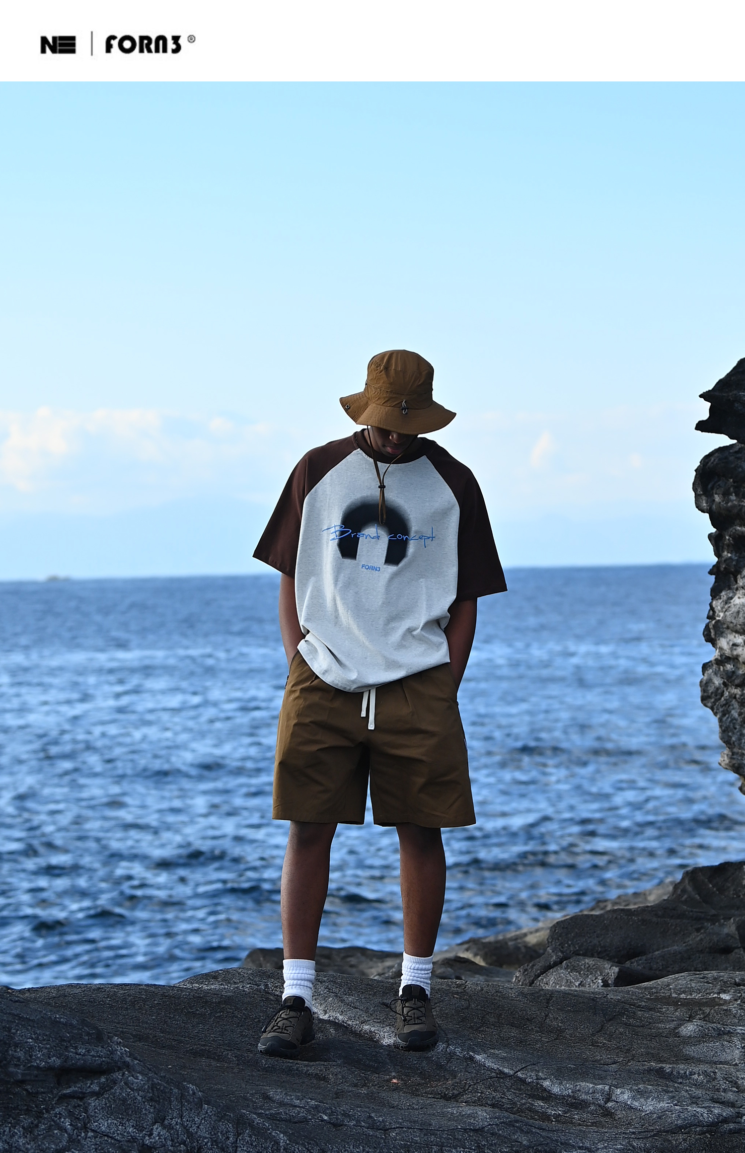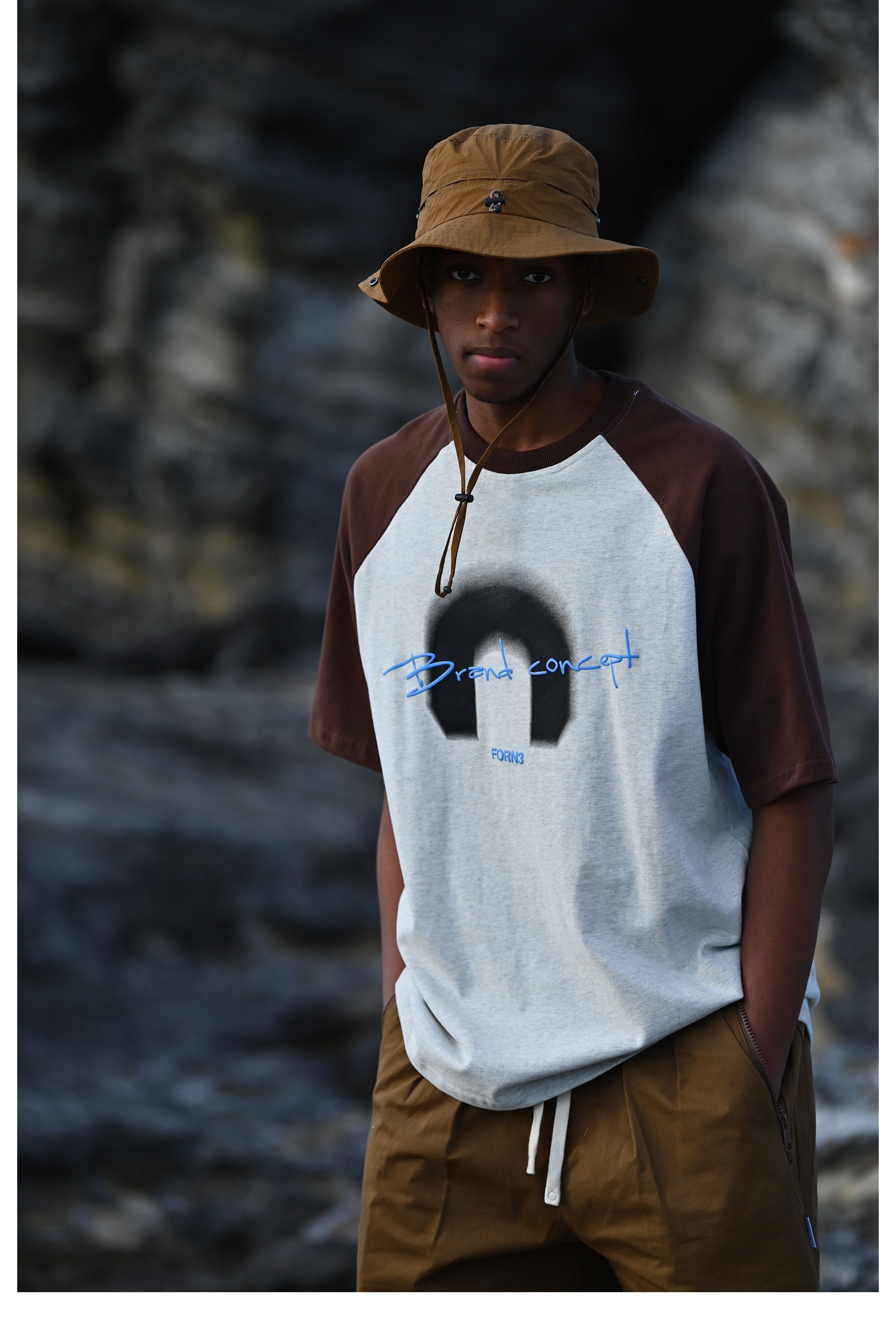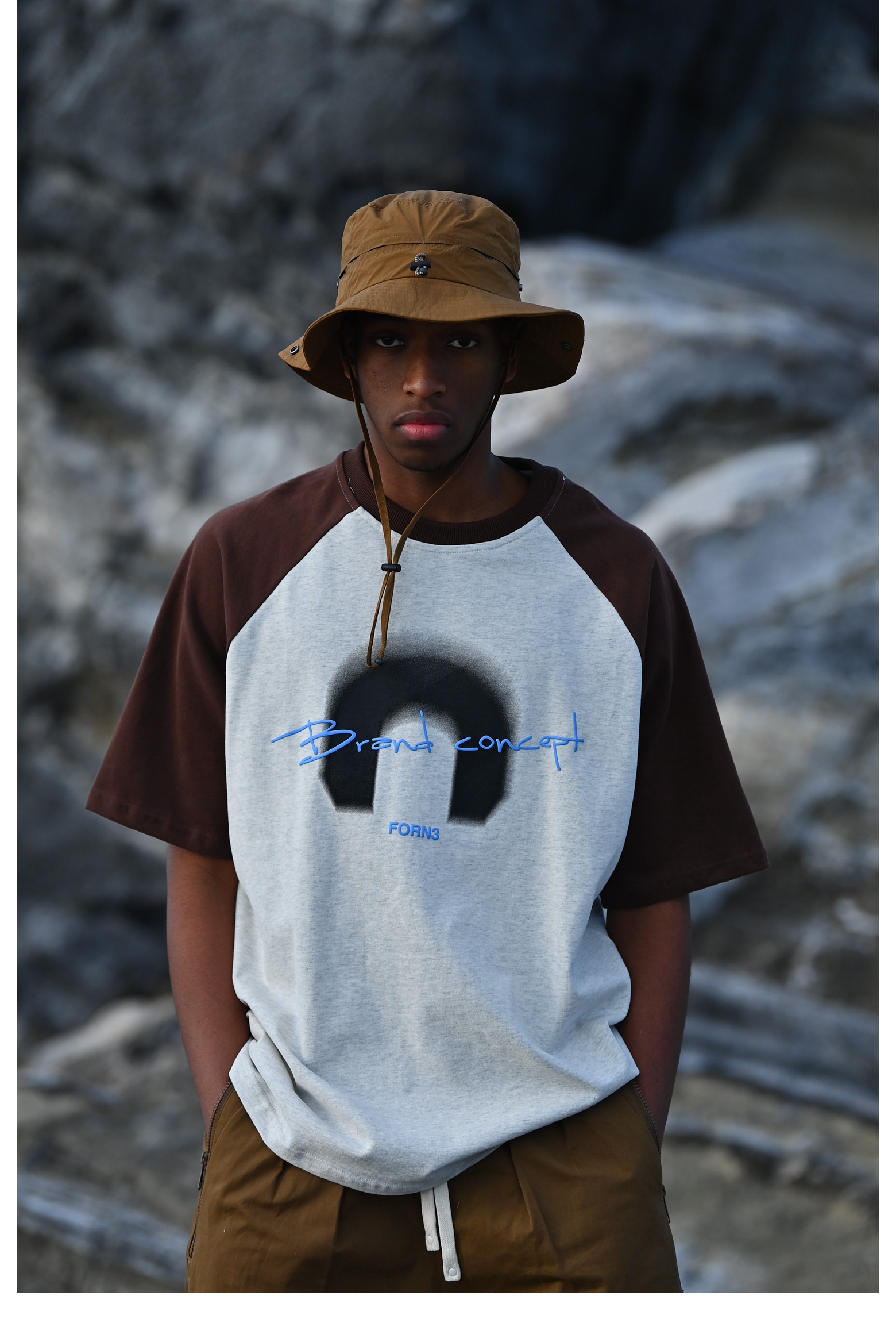 Forn3/N372/撞色拼接字母印花圆领T恤