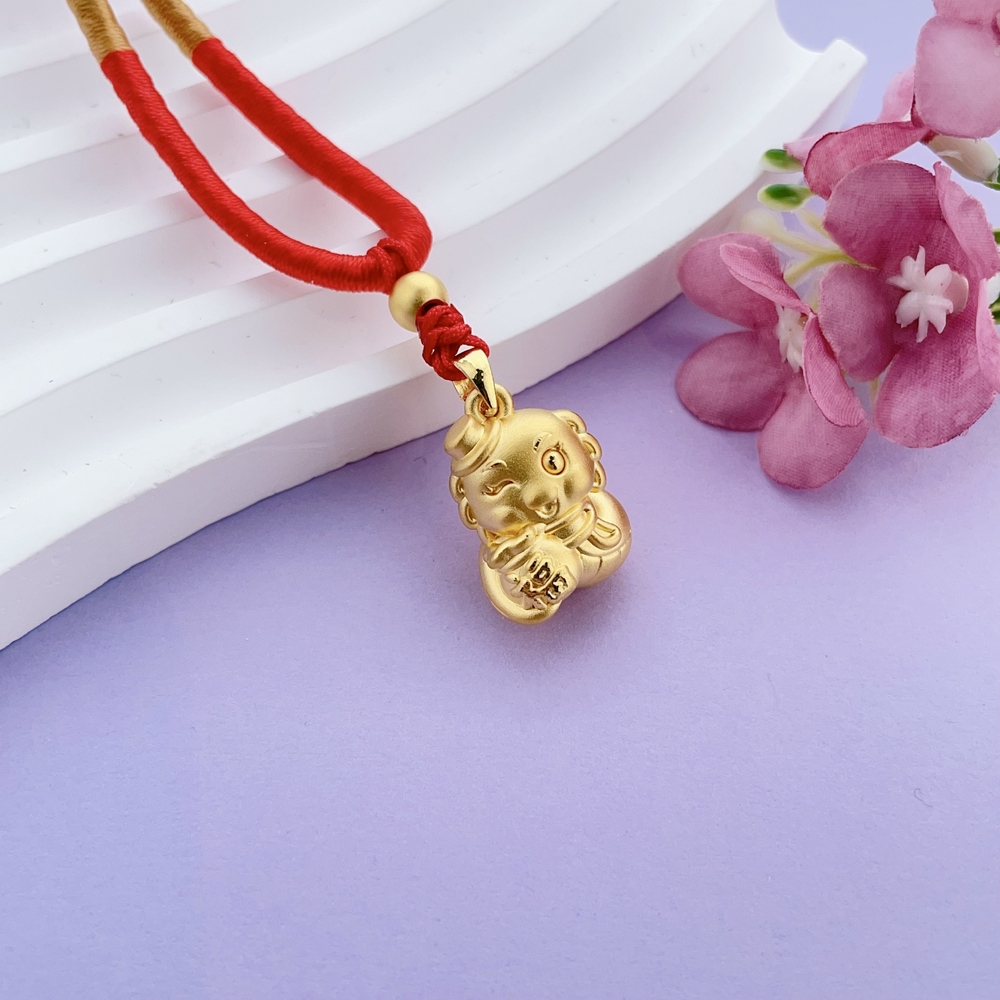 【限时7.5折】足金 #福袋 #生肖 #蛇年新品 3D硬金空心蛇年新品生肖戴帽招财福袋灵蛇宝宝编绳吊坠(含珠子)(AJ3DDZ00085)(预售产品下单后不退款不退货不换货不补差价