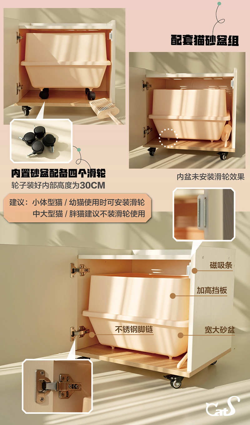 CatS猫家具 人猫共用茶几 八角边几小边桌储物柜剑麻钻桶 包邮