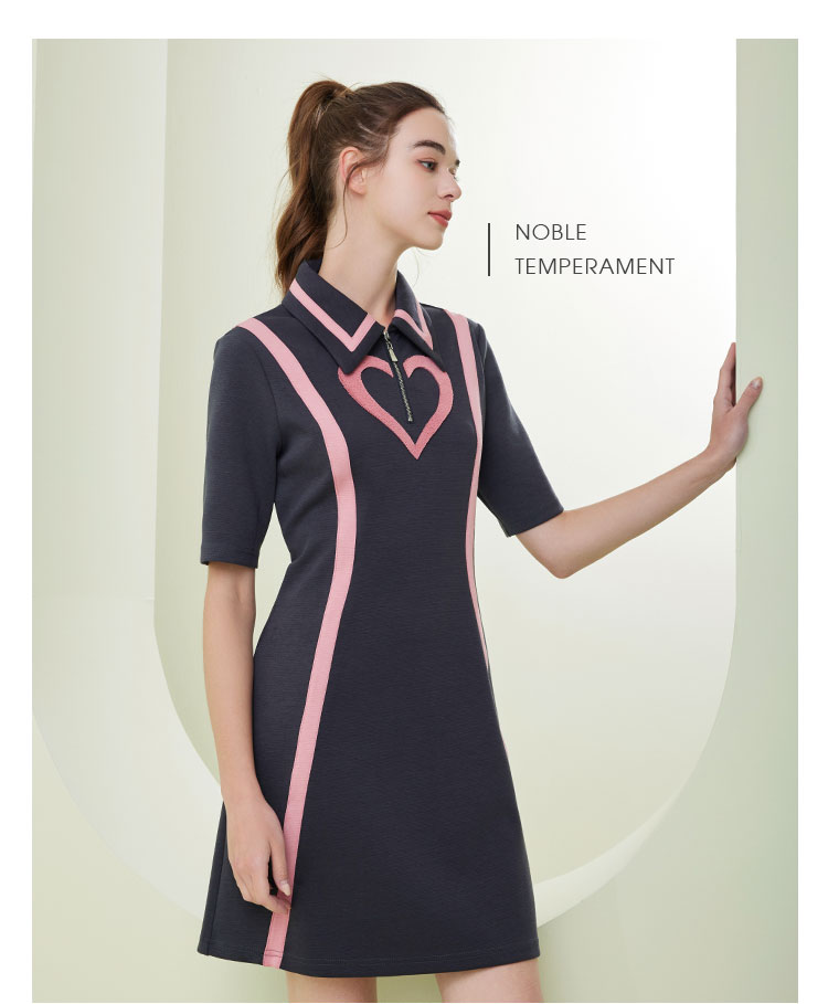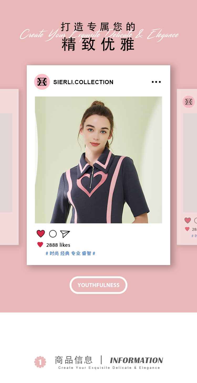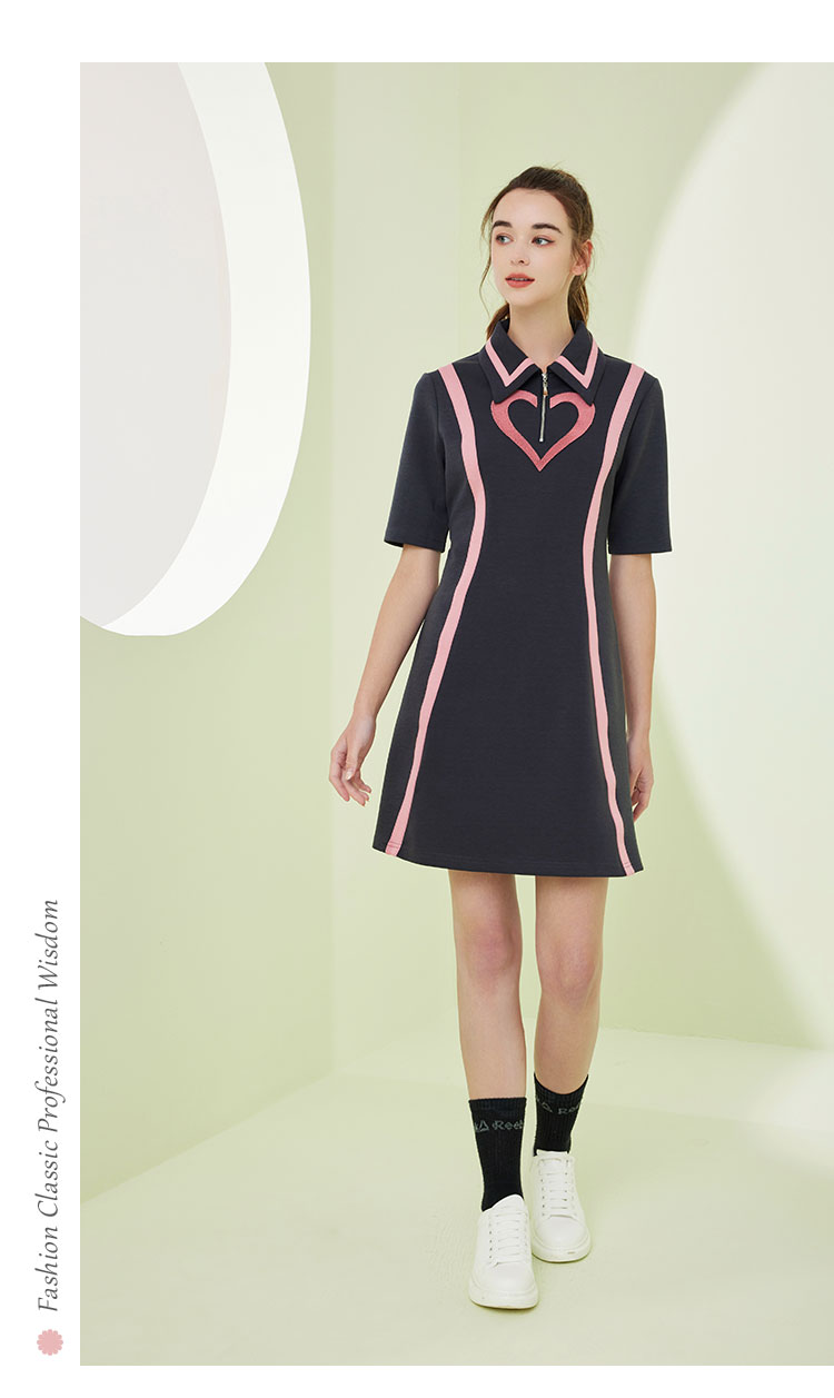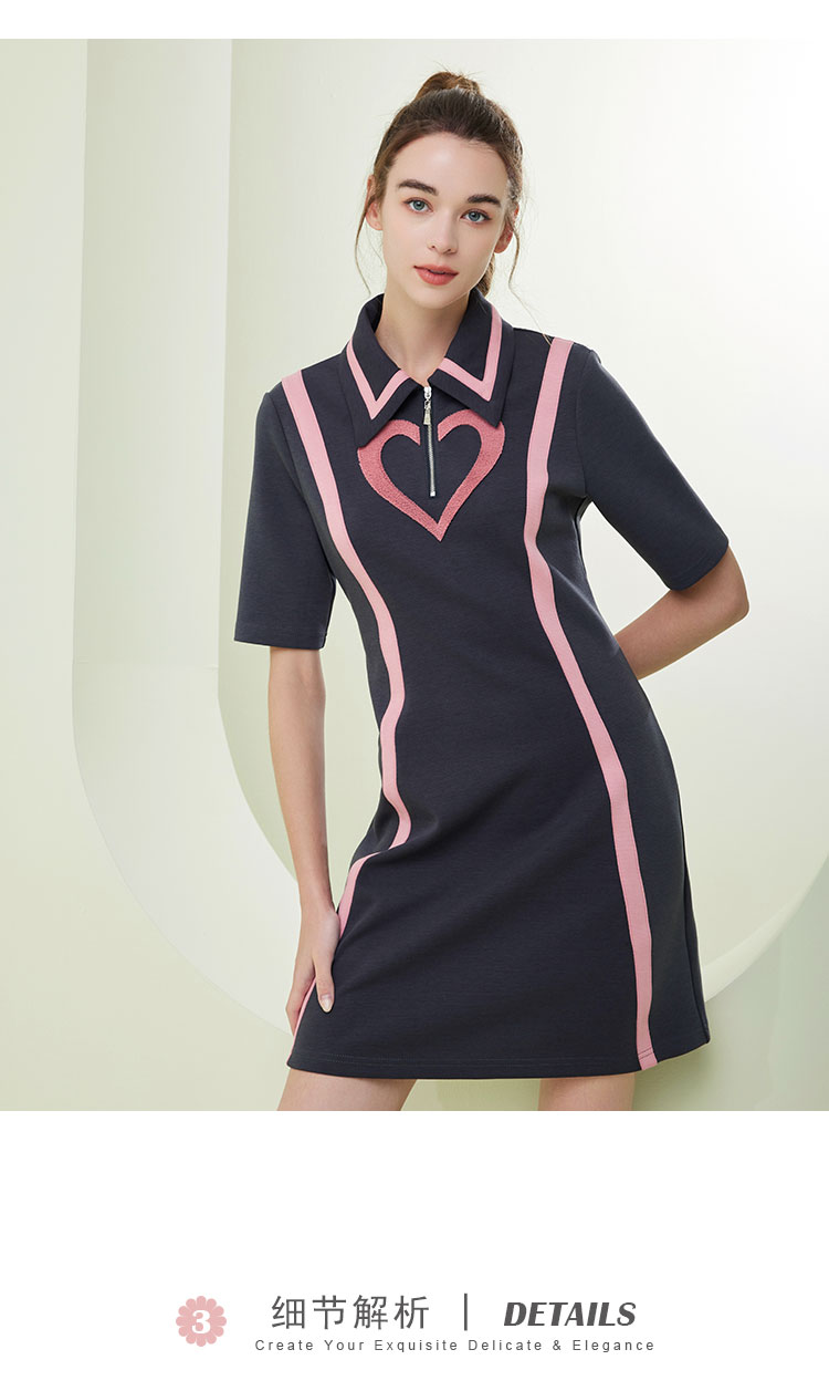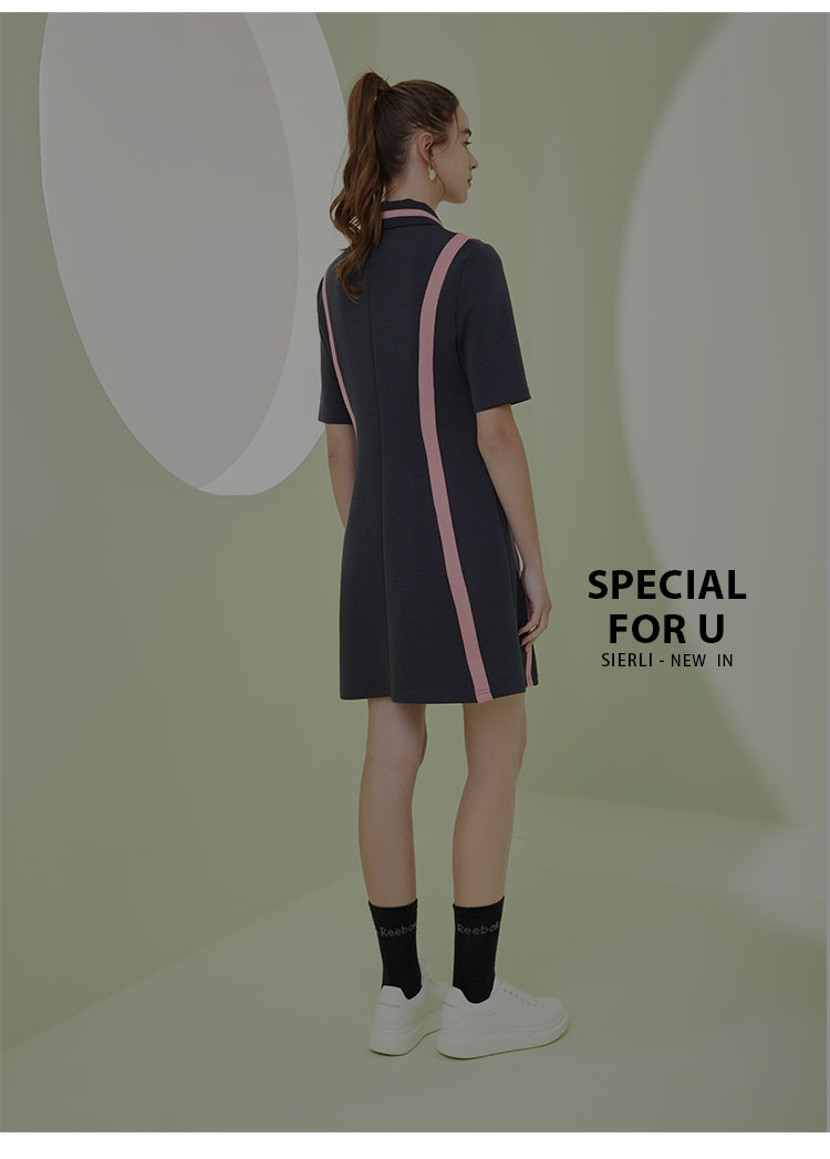 RF8E6斯尔丽瑟俪2023春夏新款撞色时尚方领立体连衣裙